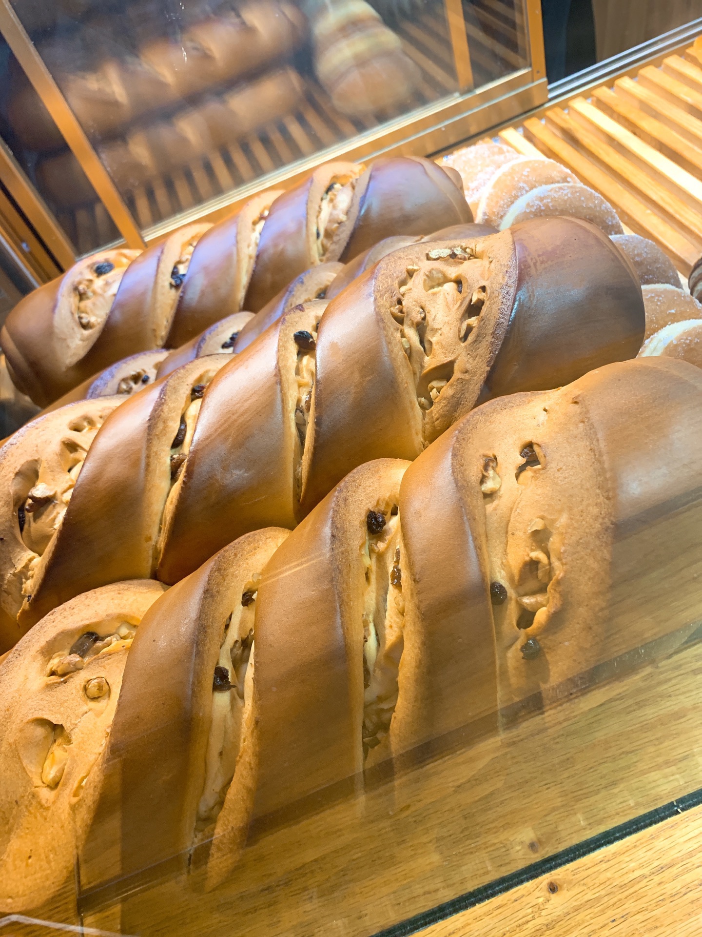 不知多久没来沃德家买面包了 现面包不是自选的形式了 而是看中后让店员拿取即可 不知谁发明的「沃德大列巴」 整条胳膊肘还粗 这够啃好几日哎…… 满满的葡萄干+核桃 面包体偏干却奶香十足 再来杯「前任咖啡」 居然是甜甜得[惊讶] 为何前任是这味道…