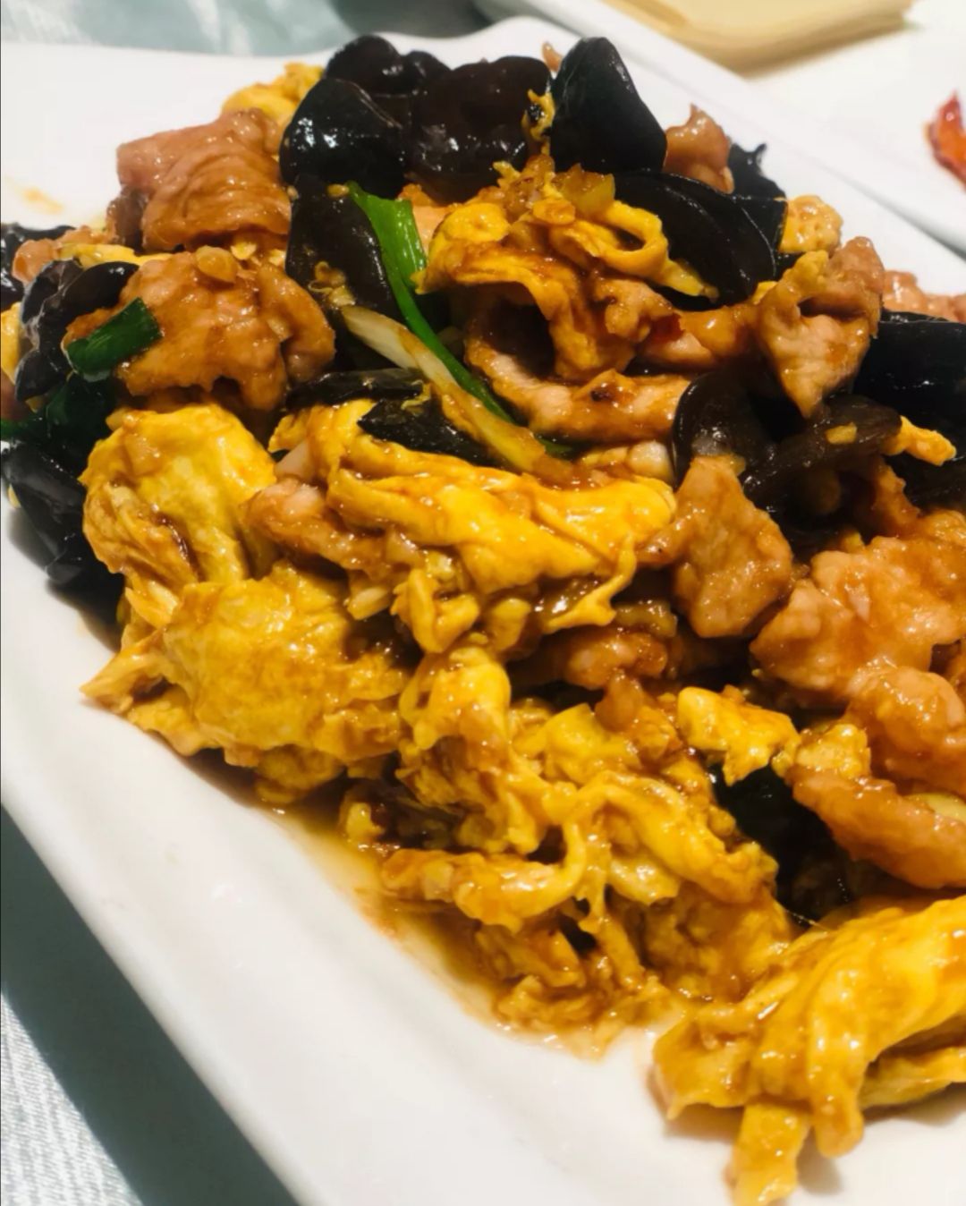 京酱肉丝,很喜欢的一道菜,绝对没错。 津味老爆三,中规中矩吧醋溜木须,传统家常口味,做的算是比较地道,鸡蛋炒的很滑嫩,里脊肉也不柴。 腰果虾仁,虾仁个头不小,感觉是新鲜的。 津味老爆三,中规中矩吧。 京酱肉丝,很喜欢的一道菜,绝对没错。