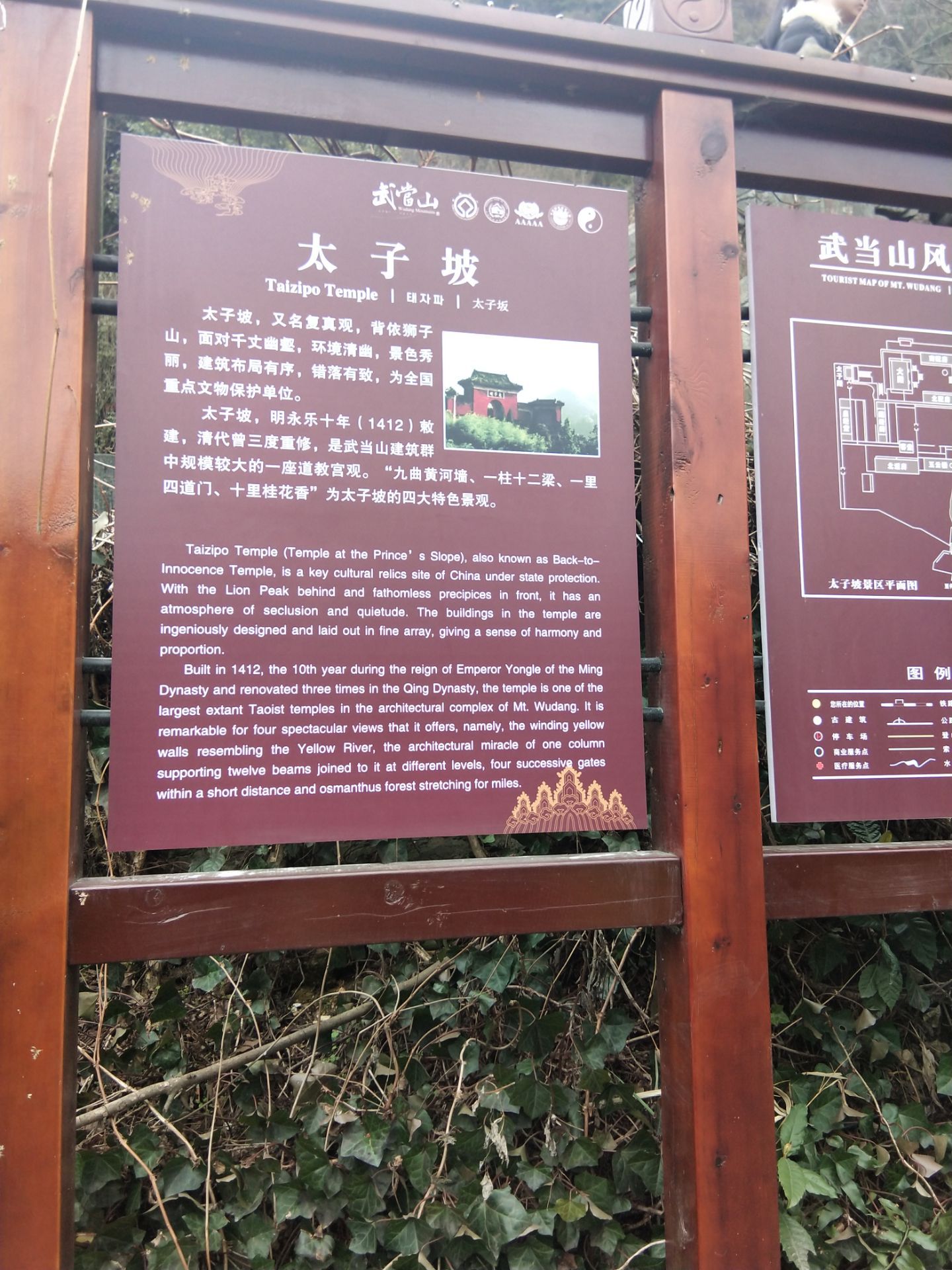 昨天从金顶下来后带着爹妈换了宾馆,因为我妈说了,半山腰的客栈风景再好她也不敢往窗外看,看了就晕,她恐高症要发作晕过去的,我妈还说了,给她一百万她也不爬武当山了要她老命了...个么换一家南岩车站附近的宾馆她满意了,放下行李稍微吃了点东西我们就坐车去太子坡了。 去太子坡上香我们心很诚,我爹脊椎里面一根钢筋我妈通风+高血压糖尿病照样一步一台阶上去了,该跪该磕头的爹妈老胳膊老腿的都做了,特意在上海换了很多很多硬币,心诚则灵。