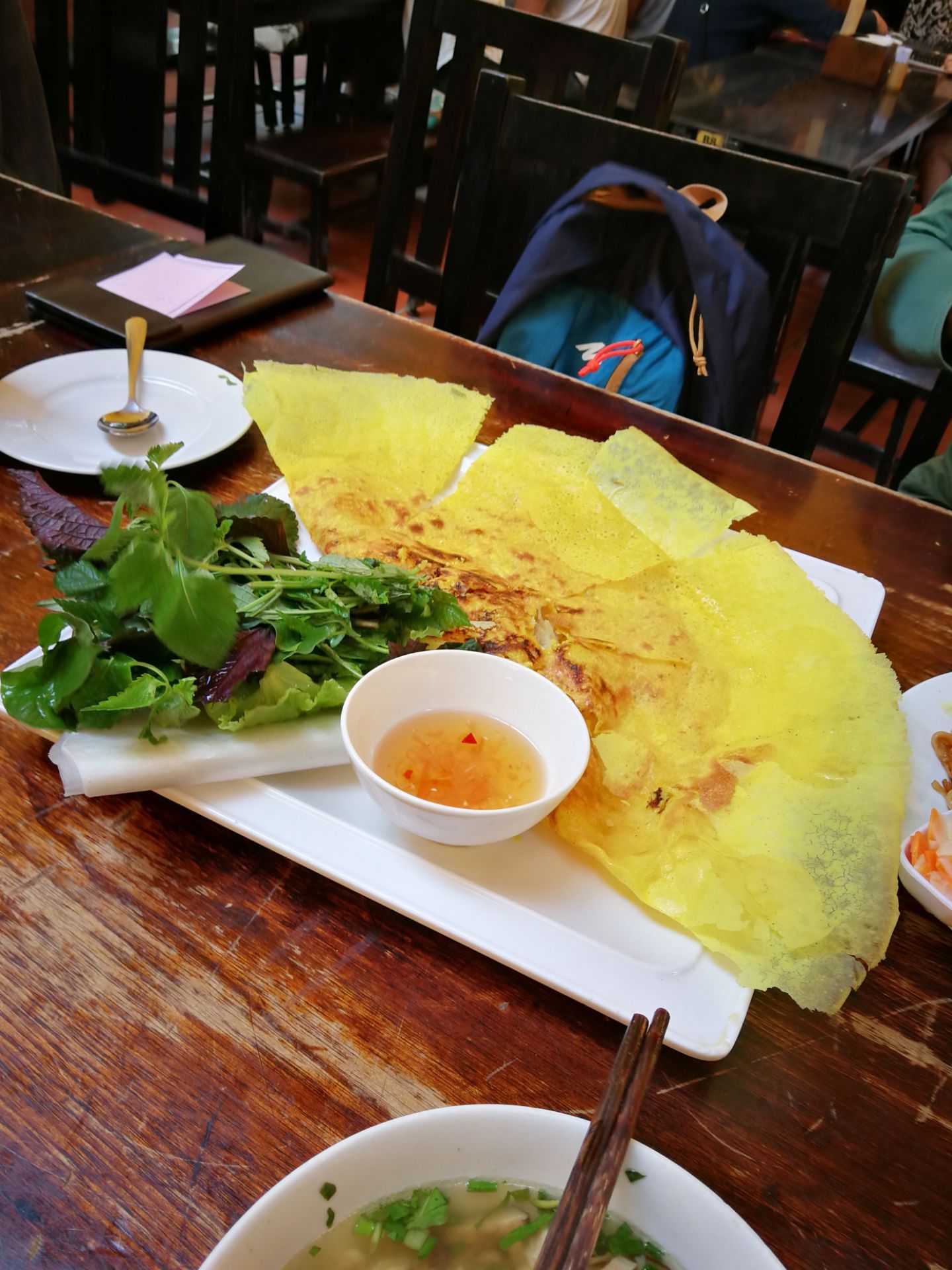 ...上名字,但是重点推荐那个金色大煎饺,用白色的米皮包上一下煎饺和不知名的青菜,蘸酱汁吃,非常美味
