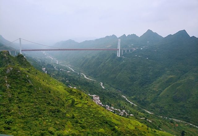 坝陵河大桥位于中国贵州省关岭布依族苗族自治县沪昆高速公路上,主桥为跨径1088米的单跨钢桁架悬索桥,全长2237米,至坝陵河水面370多米,是贵州省沪瑞国道主干线上跨越坝陵河大峡谷的第一座特大型桥梁,也是山岭重丘国内第一长桥。此桥梁于2009年12月23日建成通车。