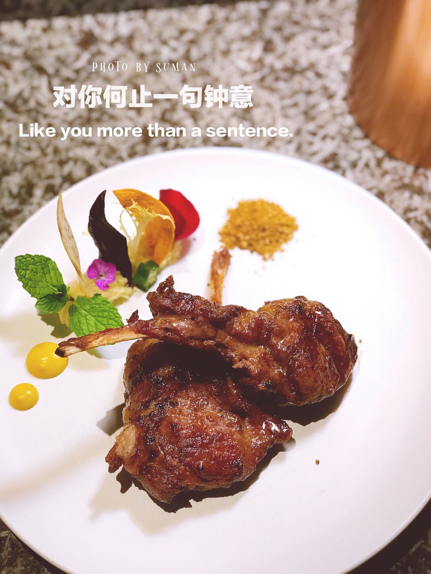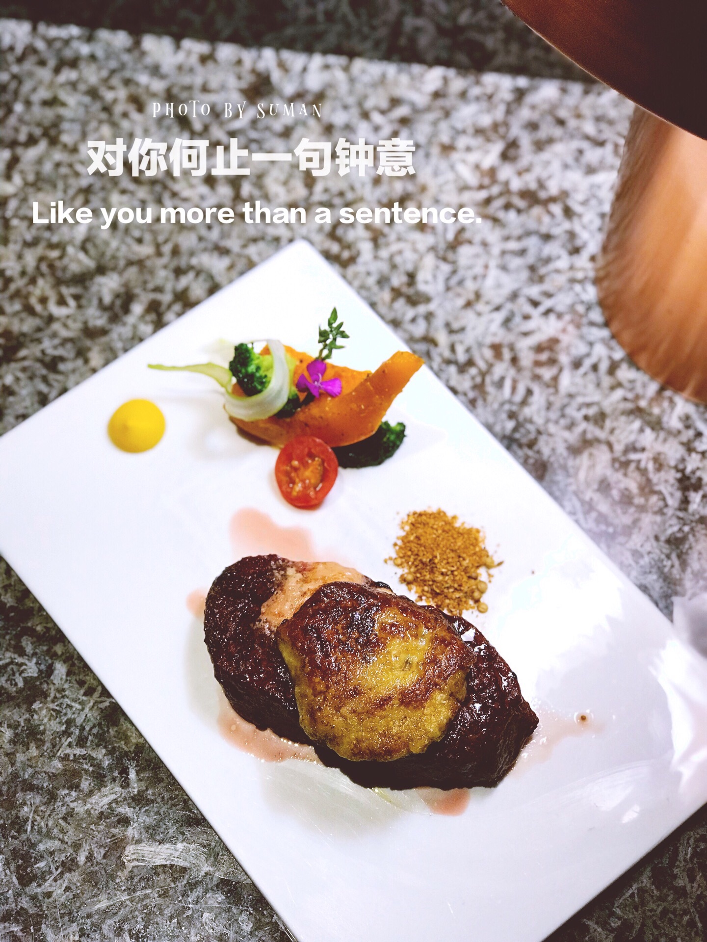 对你何止一句钟意 位于体育路奥永广场二楼的钟意牛扒,开业三年,相识三年了。从第一次在钟意用餐之后就把这家店划入自己会经常去,推荐给好友的店。 常有朋友让我推荐环境好些、价格适中、味道不错的西餐厅,第一想到的就是钟意。而有什么纪念日节日也是会来这来一餐。 虽然是西式餐厅,店内餐品也还是有一些中日泰融合菜品,也有包间,就很适合宴请,一家人来。全面照顾到每个人的口味。 钟意牛扒,自然首推荐的就是他家的牛扒,性价比及品质都值得一夸。品质好的牛扒不一定要价格不菲。 鲜鹅肝安格斯牛柳,油脂饱满口感细腻的鹅肝搭配上鲜嫩多汁的安格斯牛柳,一定要一口鹅肝一口牛柳。舌尖上是两种不同的触感,味蕾是不同的体验。让你一次吃到两种美味,爱极了。 肩胛牛扒,七分熟。保留了牛扒最好的口感,兼顾了国人不喜太生。火候把握恰到好处,肩胛牛扒口感更加丰富,入口与以往吃到的牛肉有明显的对比。果然吃过好的牛肉之后,你再不想将就。 脆薯鲜虾,一道前菜。酥脆的薯片加入新鲜虾仁、水果沙拉。打开味蕾的时候又可以做为一道搭配红酒的小食。 还有没在照片里的冬阴功汤,绝对也是打开食欲的一道开胃好汤。酸辣特色的泰式冬阴功汤,一碗喝完还要再要添上一碗的。 海鲜墨鱼饭,钟意的海鲜墨鱼饭也是让人颇有好感。湿润的米粒搭配新鲜的虾、青口、鱿鱼、文蛤、鱼肉。满满一份,味道也是很不错。 一顿美味晚餐也少不了美味的甜品来做结尾。也可以看出钟意在各道料理包括甜品的用心之处。摆盘精美,造型诱人,当然味道更是吸收了少女心。 有谁不想来钟意感受这样集美味颜值浪漫的晚餐呢~