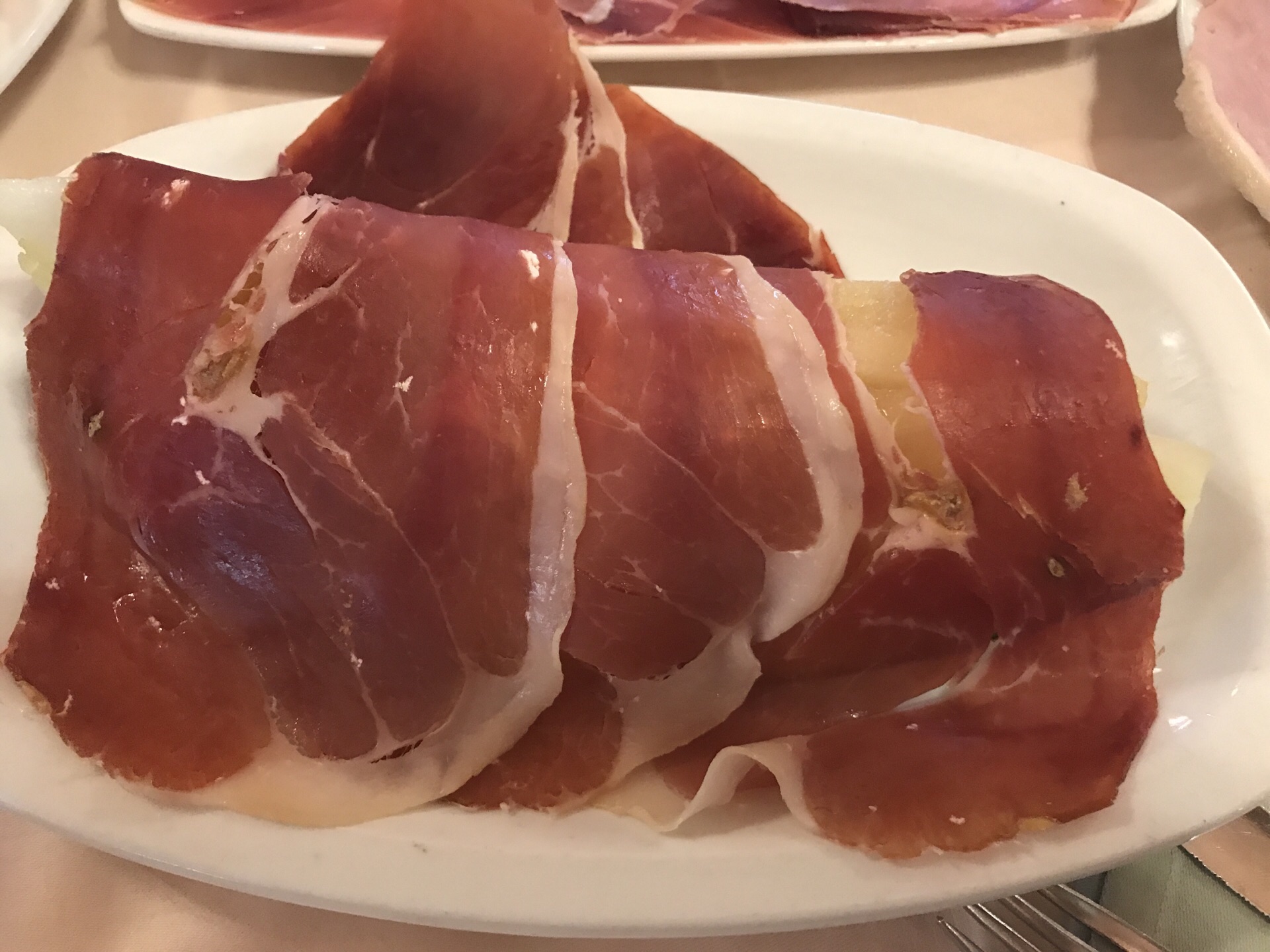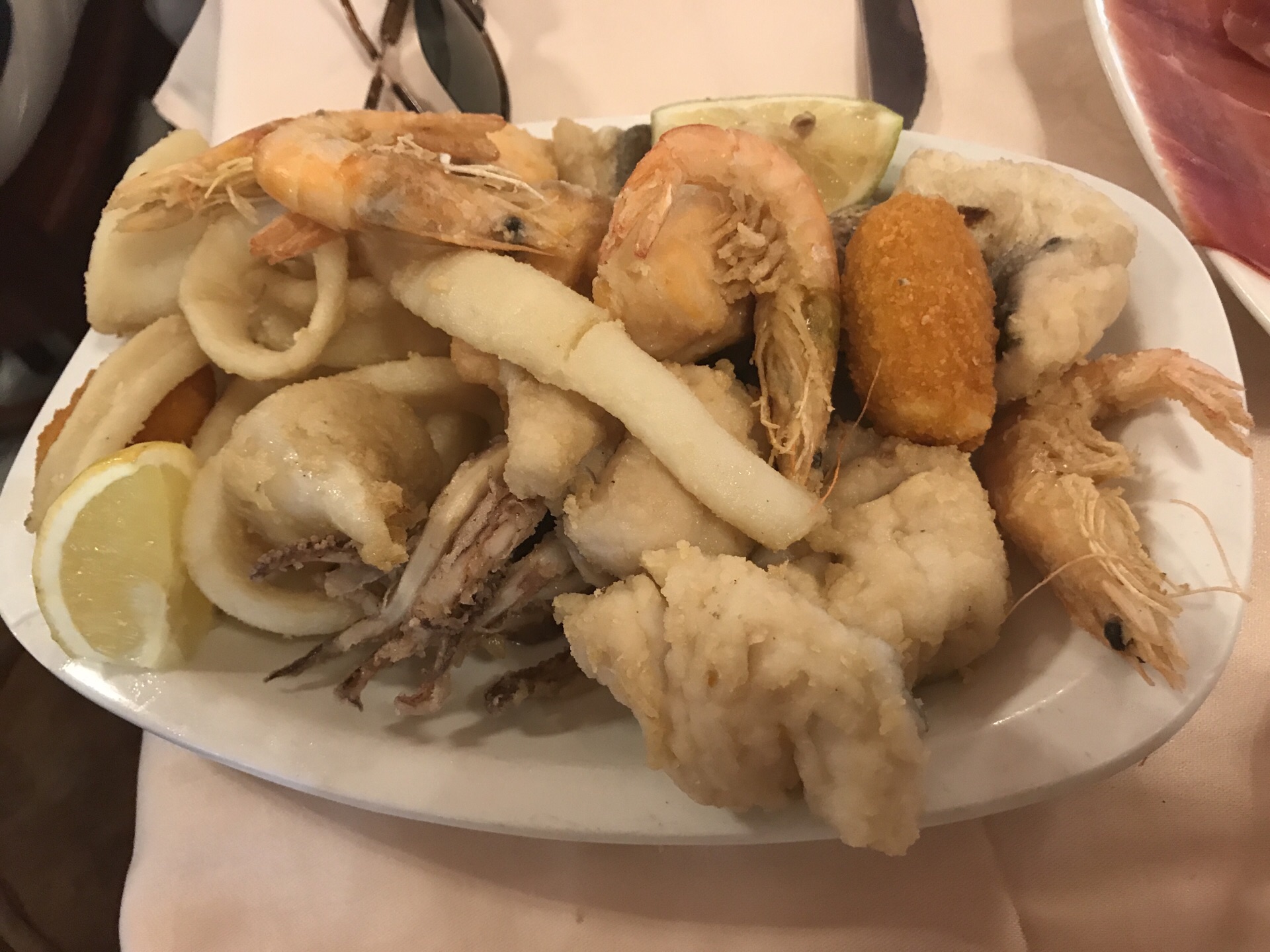 这家店名声在外,人是真的多,吃饭要请早,一楼是买火腿的,二楼可以用餐,火腿种类很多,但是菜单不太看的懂,蜜瓜火腿必点,蜜瓜的甜正好中和了火腿的咸,海鲜拼盘也不错,最爱鱿鱼圈,它家每盘的菜量都很大,建议大家少点一些