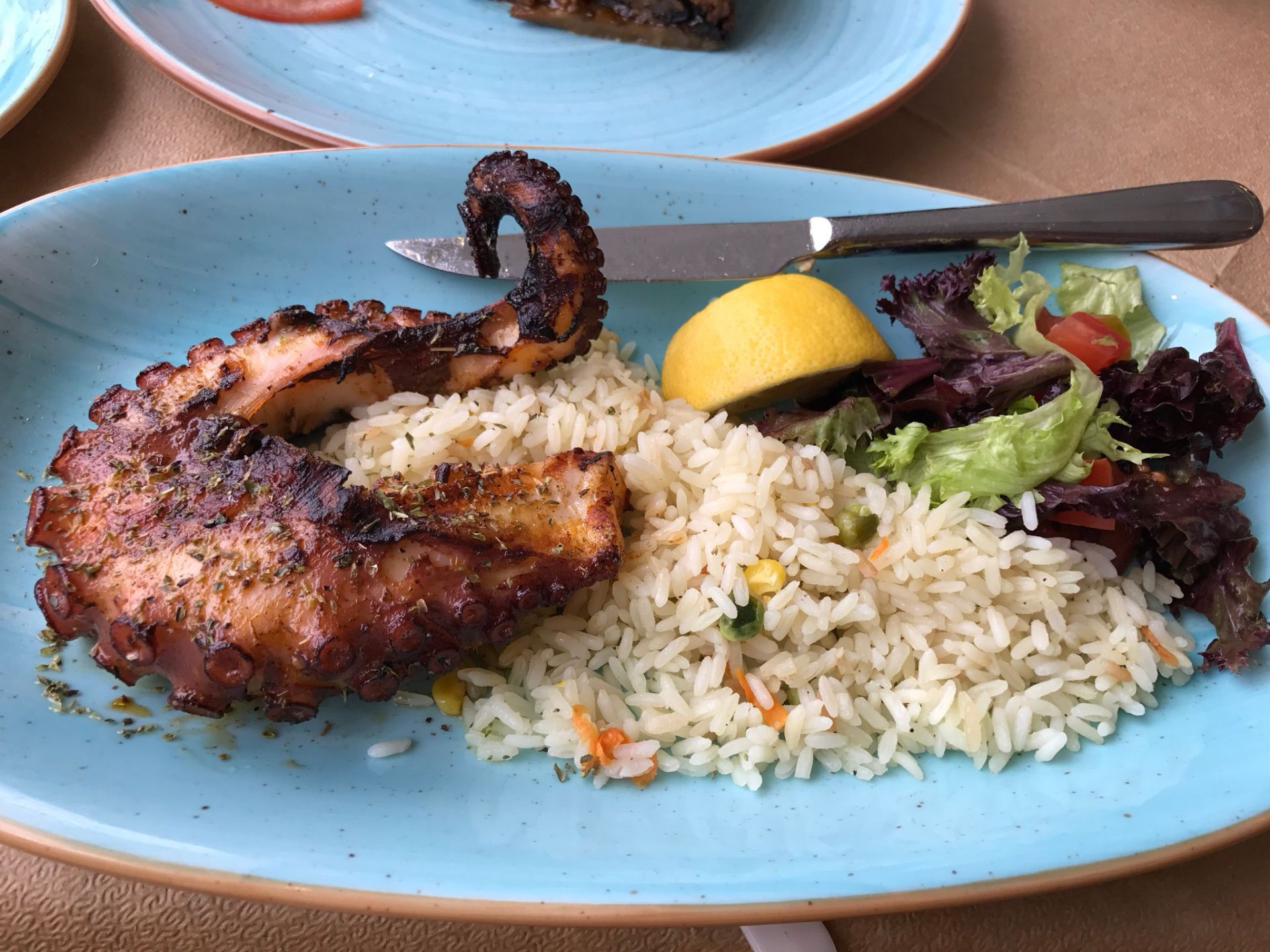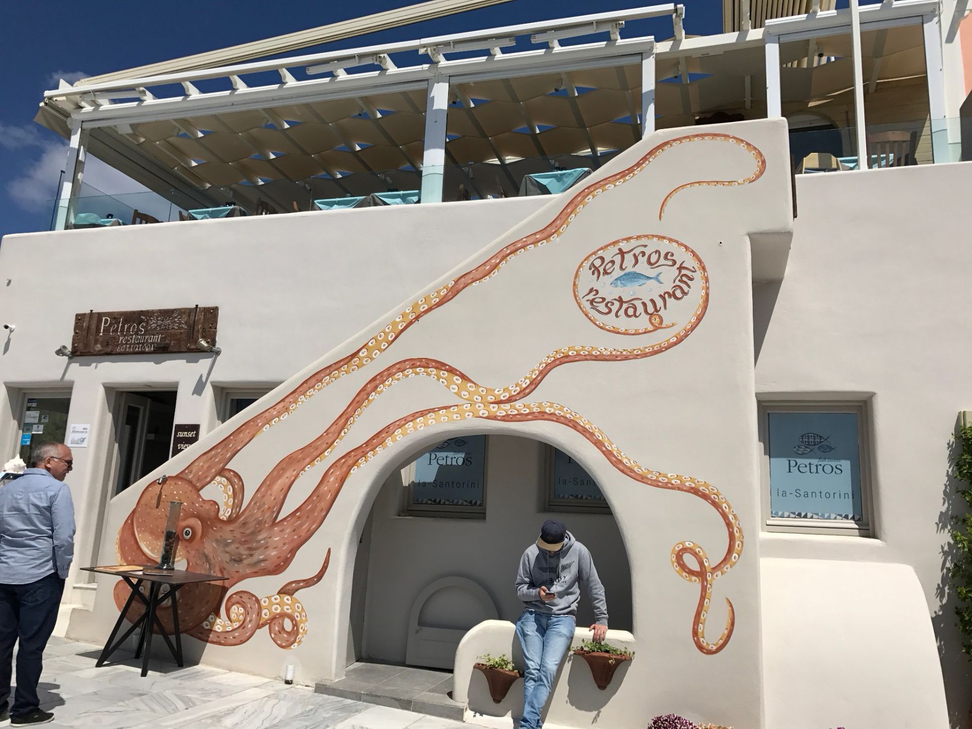 网友2019-03-15圣托里尼岛上的这家海鲜餐厅绝对的大名鼎鼎,最为出名的就是他们家的章鱼圣托里尼岛上的这家海鲜餐厅绝对的大名鼎鼎,最为出名的就是他们家的章鱼。餐厅的环境是半露天的,一边欣赏着美丽的海景,一边欣赏着这里的美食,真的超级的有满足感。