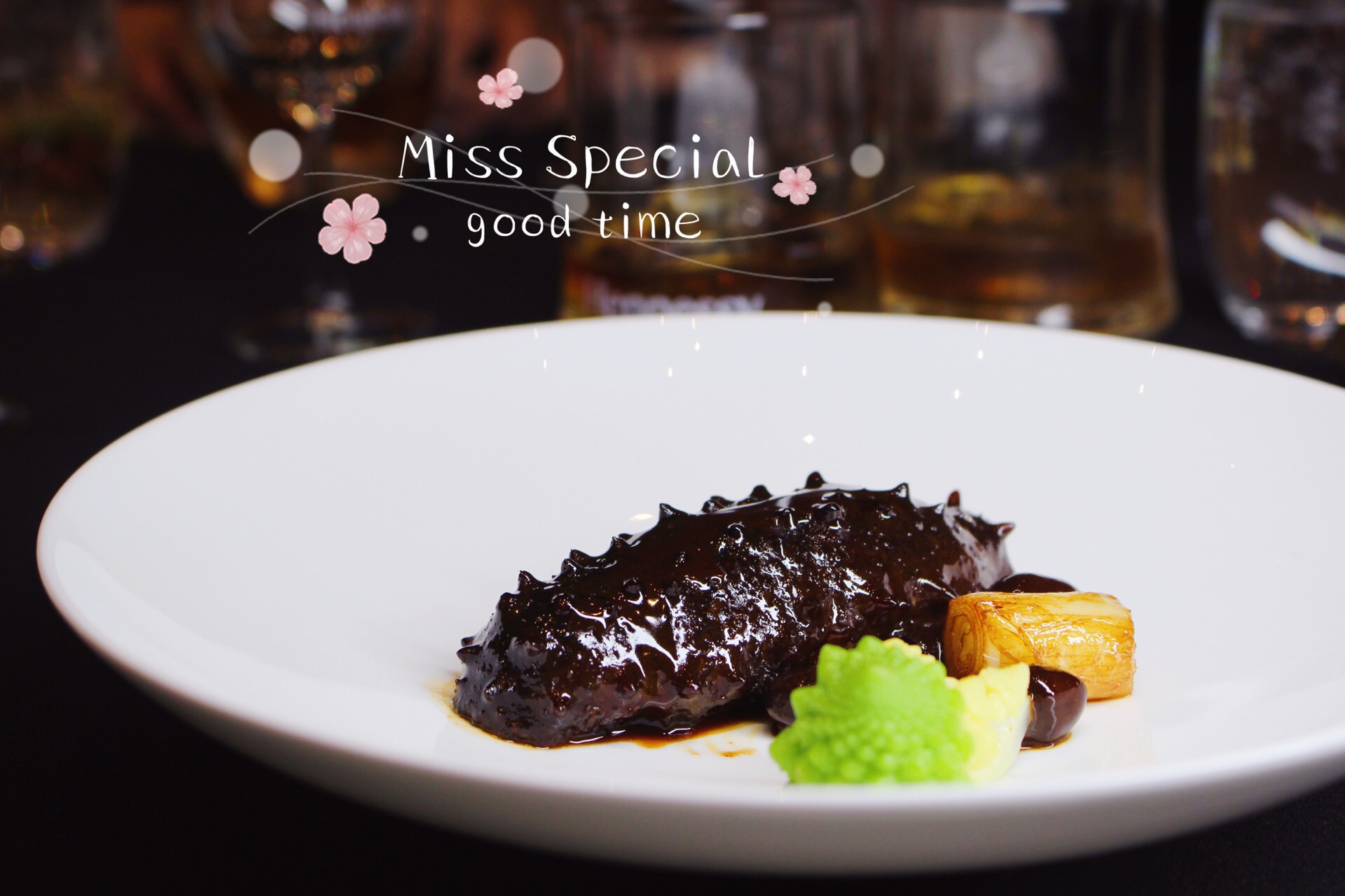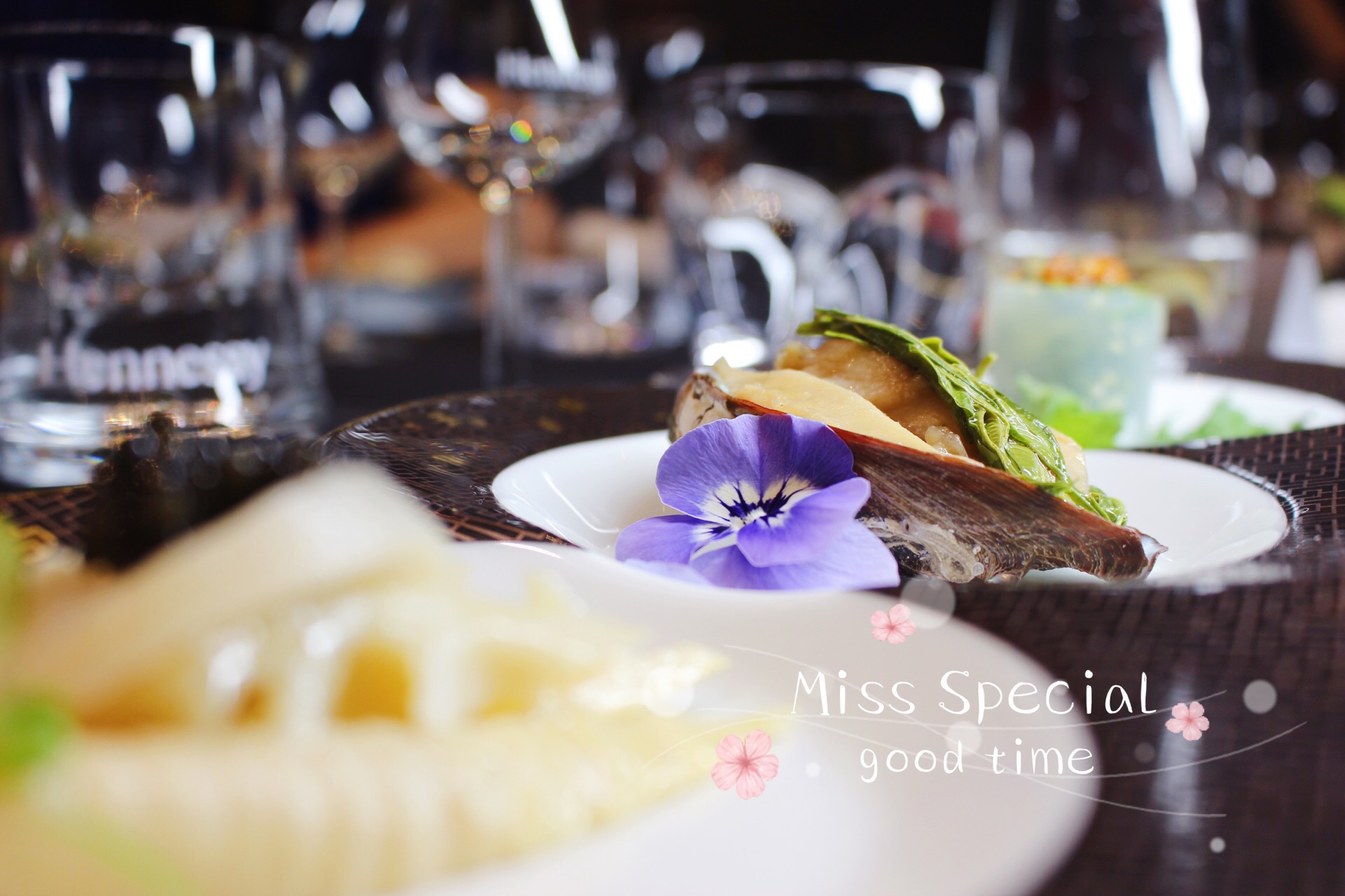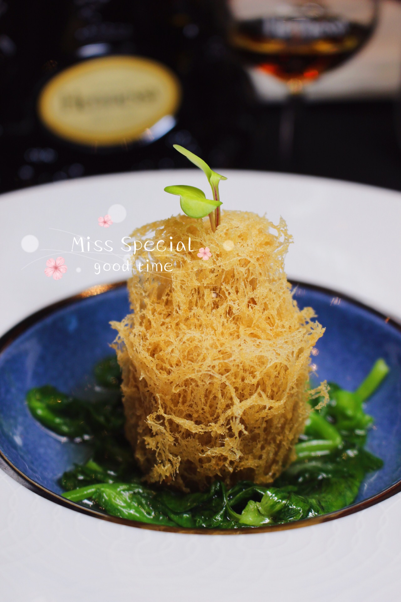 法式风格的粤菜什么样?可以是一边饮着轩尼诗美酒,一边品尝充满西式现代风却又不脱离粤菜本质的中国菜肴,重新发现中国味,有很多新的惊喜。金枪鱼话梅石榴薄脆,金枪鱼肉丁在话梅汁的腌渍下变得滋味层次更丰富,鱼肉的鲜香中,多了一缕果子的酸酸甜甜,清津开胃。向来喜欢鲍鱼,而鲍鱼的软硬度不是一般主厨能拿捏得好的。东方司宴的45度水温分子料理低温大连鲍鱼,口感鲜嫩得的确令人喜欢,软硬和质感刚好,再搭配着香椿苗,流露着春天的细腻之感。春食不腻口,有余韵,有回味,为了这样的味觉体验,主厨总是费尽心思寻味好食材,鱼子酱便总能带给人惊喜,搭配贝柱和春笋,春笋带来山中泥土的气息,鱼子酱有水的润泽,如此搭配,融合了山水的回味。