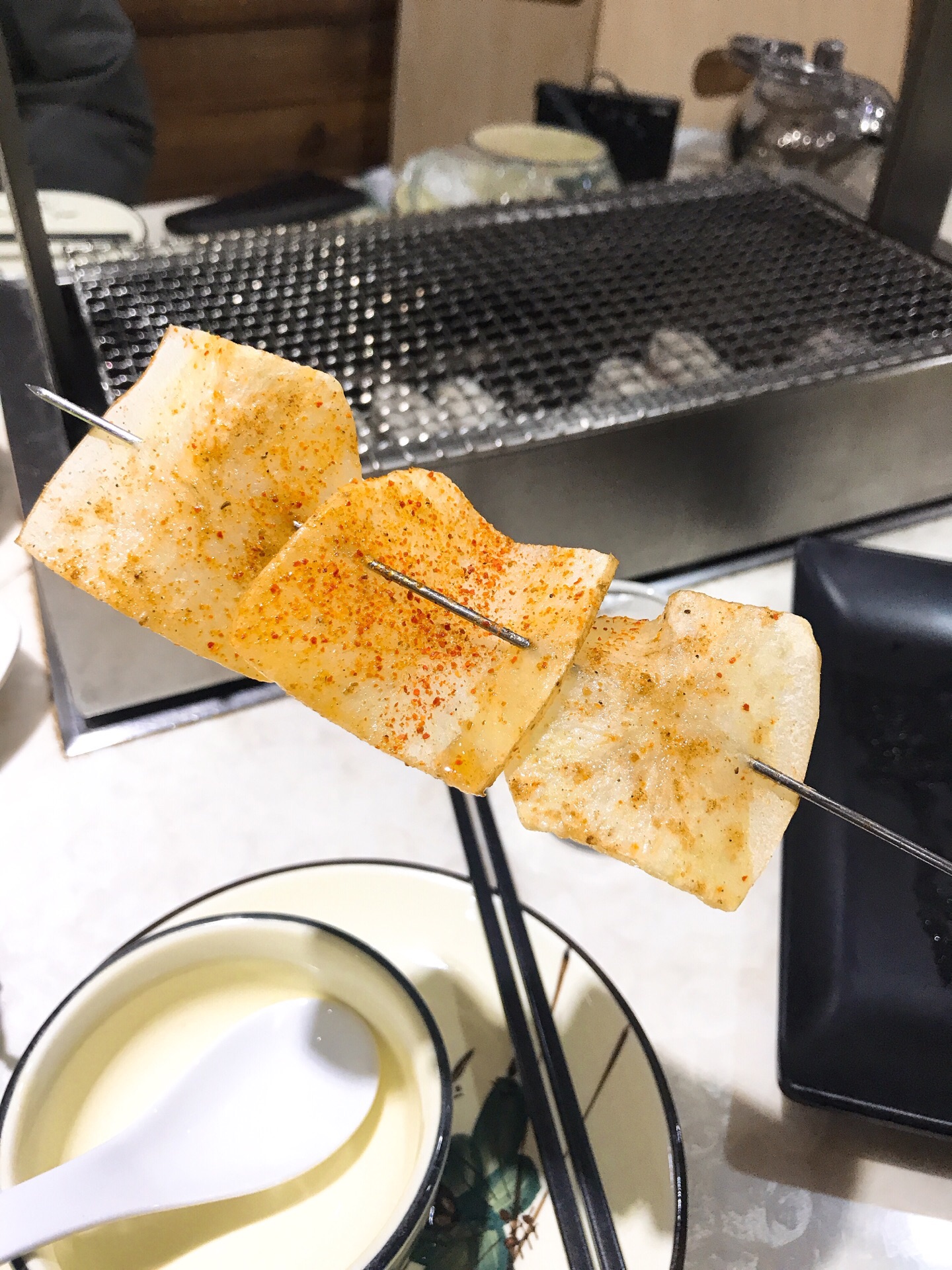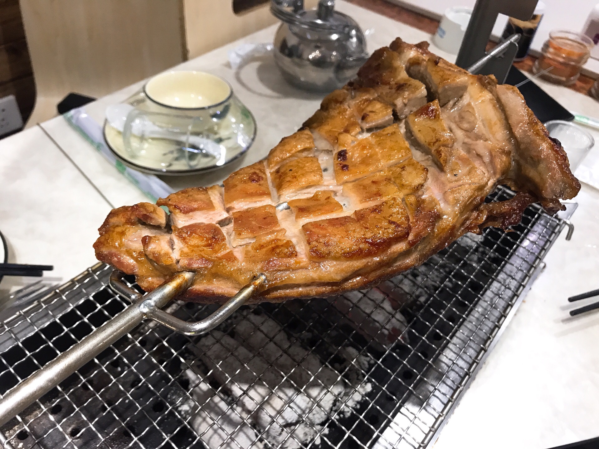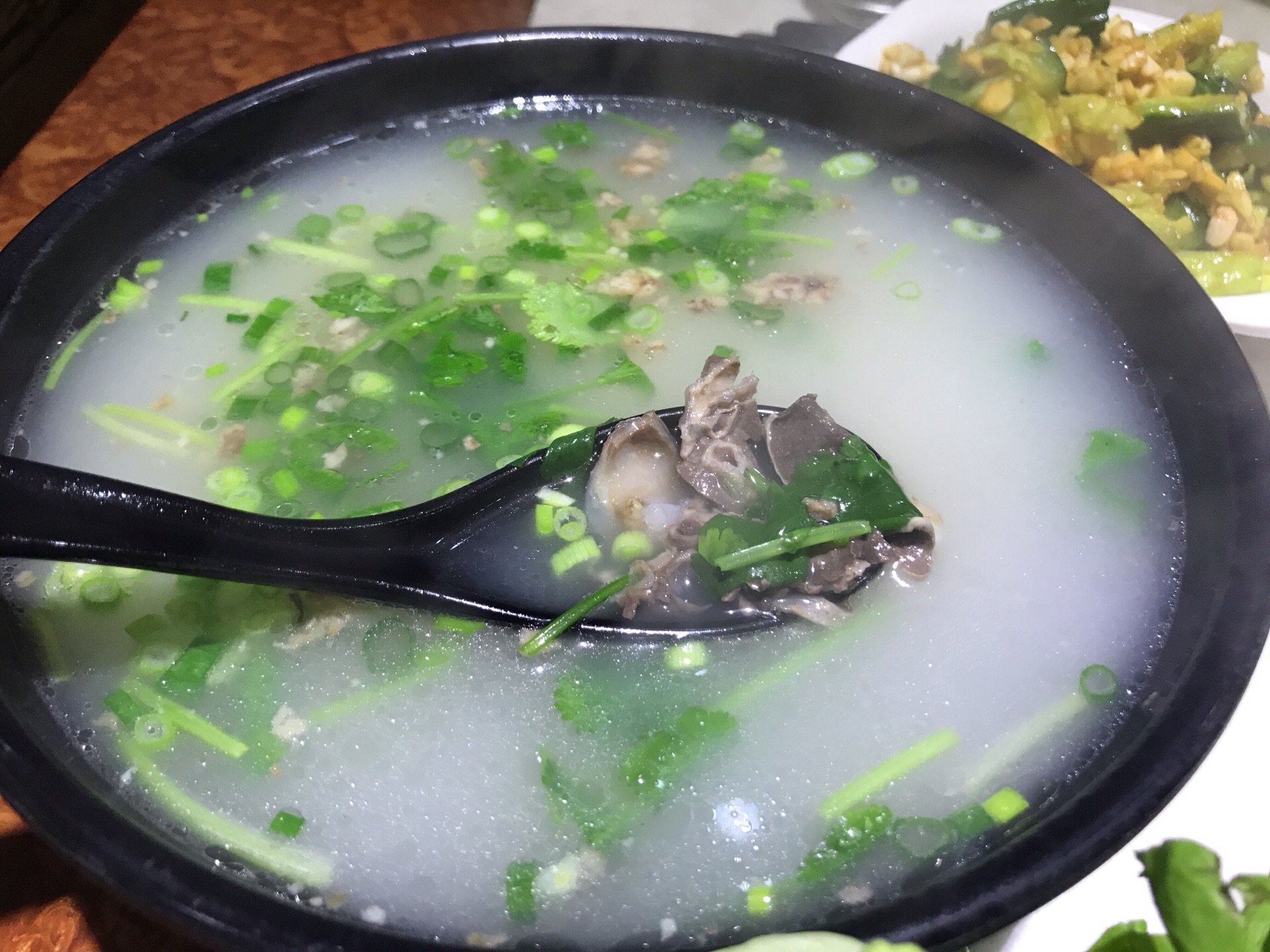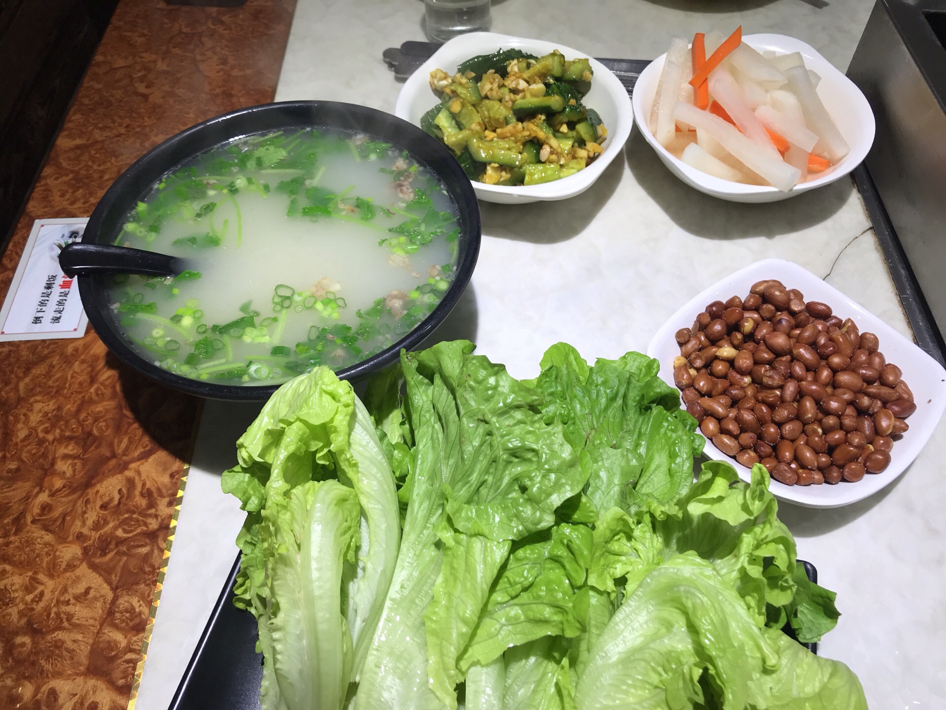 之前去吃旁边的鸭血粉丝,看到门口在分切整只羊,就觉得这家羊肉应该不错 羊排、羊腿称斤卖,一般现场都有,按人数点个多少斤,半只整只的可能要提前订,3斤羊排即使加上了骨头的重量,3人依然吃撑,羊肉很不错,在南方能吃到嫩口多汁鲜美,又没什么膻味的羊肉,也不容易,羊肉切了花刀,但切小块还是不太容易,这可比切牛排费劲,羊肉肥瘦相搭,好吃的紧,不蘸调料就可享受原汁原味的羊肉美味 店员说怕腻的话可以羊肉包着生菜吃,总觉得这种思密达吃法有点怪怪的,所以生菜都没动过 羊杂汤也很鲜,其他小菜也不错,烤土豆片很好吃 宁波这儿爱吃肉的人不多,像这样大口吃肉的感觉确实很爽