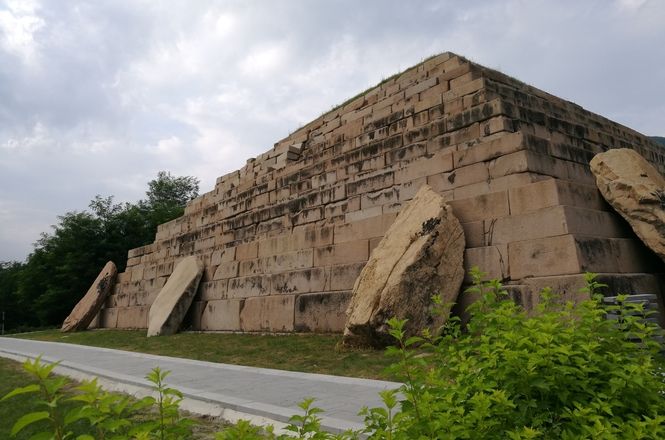位于吉林省集安市东北约4公里的龙山脚下,因其造形颇似古埃及法老的陵墓,因此被誉为“东方金字塔”,推算为公元四世纪末五世纪初高句丽王朝第二十代王长寿王之陵。整座陵墓呈方坛阶梯式,高13.1米。墓顶面积270平方米,墓底面积997平方米,全部用精琢的花岗岩砌成。坟阶七层,每层由石条铺砌而成,每块条石重达几吨。第五阶有通往墓室的通道,盖棺石板重50多吨,每面三个护坟石各重10余吨,其势宏伟壮观。