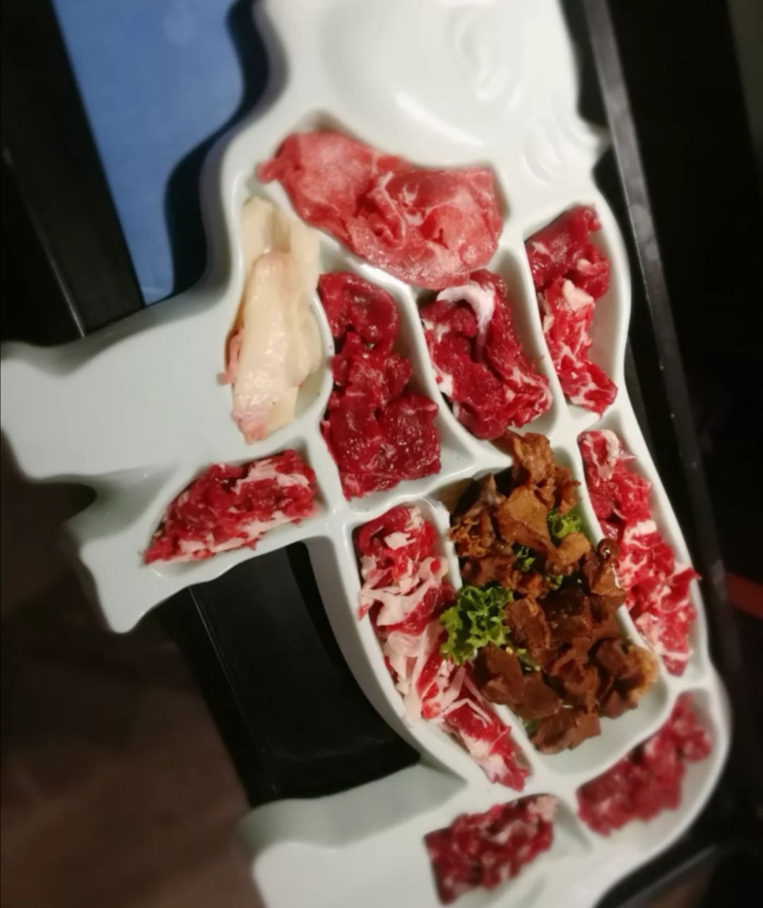 网友2019-03-17很有特色的一家手切牛肉,牛肉都是手工切割的,小小的拼盘上摆着牛肉的各个部位的肉,涮起来吃很嫩,...很有特色的一家手切牛肉,牛肉都是手工切割的,小小的拼盘上摆着牛肉的各个部位的肉,涮起来吃很嫩,锅底就是普通锅底,牛油味很重,三鲜锅底还可以,服务还行吧。