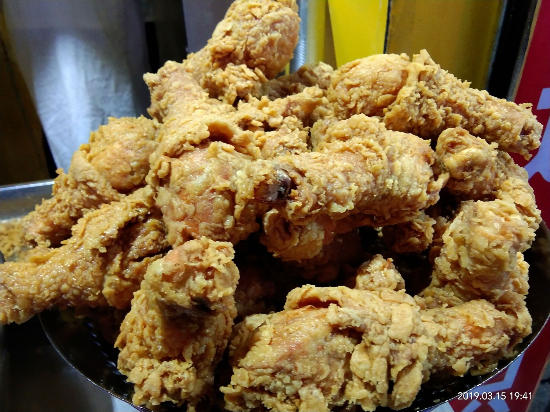 每每去台东步行街,就看到这家在排队,(;´༎ຶ(oo)༎ຶ`)心想不就是炸鸡腿么 (*^▽^*) 直到我也加入了队伍中(λ▀ˇ▀) 那是一个大风降温的黑夜,那排队就是一个遭罪,一锅出来也就是卖八个人左右,还必须前面的人儿没有多买的。 鸡腿倒是挺大,建议什么料也不加,原味趁热吃,满满的热量ヾ(@^▽^@)ノ