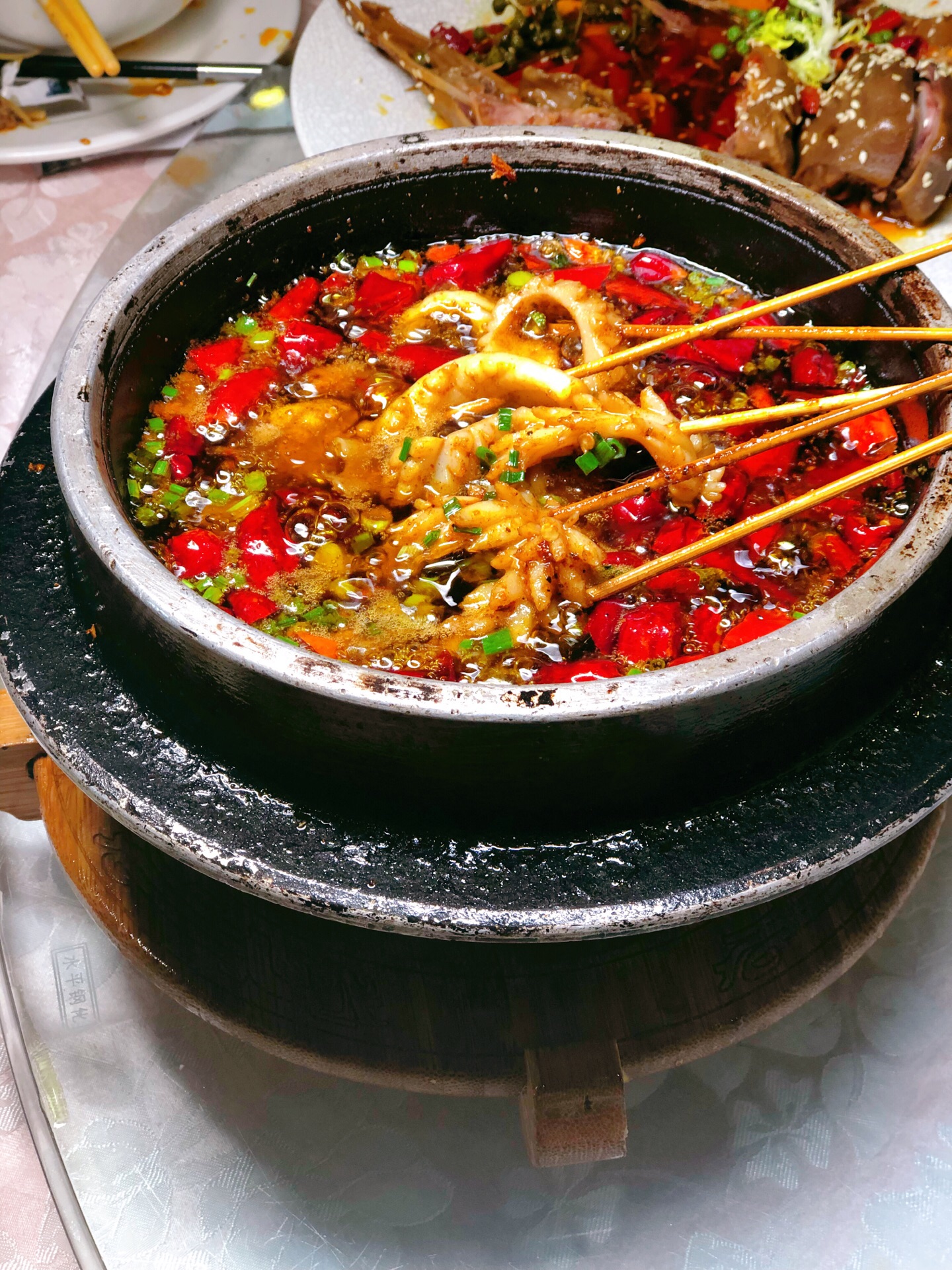 喝完盖碗茶,来一次川菜之旅 [环境] 位于景区内,小院里,别有一番味道 桌子挺大的,适合家人团聚 [服务] 阿姨们的服务还是挺好的 「鸭头」 我个人挺喜欢的一道菜,鸭头一分为二 盐味适中,微微带点辣,啃一个很香,停不下来的节奏。我觉得比某伟鸭脑壳好吃。 「传统鸡豆花」 一道菜看似简单,却很靠厨师手艺的菜 他家的鸡豆花比较嫩,口感不错 「招牌口水鸡」 凉拌菜,油辣子很重要,他家的红油还不错 鸡肉紧实入味。 「沸腾鱿鱼蛙」 这道菜好吃,鱿鱼穿在竹签上,麻辣鲜香 锅里的芋头真的很好吃,比起本地芋头更爽滑 蛙肉也很嫩 「硕果累累辣子鸡」 造型有意思,糖油果子无疑是成都小吃界必点菜 辣子鸡鸡肉炒的干香,很下饭。 老坛凤爪: 酸辣味十足,凤爪无腥味,口感紧实 最后来杯盖碗茶,坐在小院里,看看外面的游客,生活惬意。