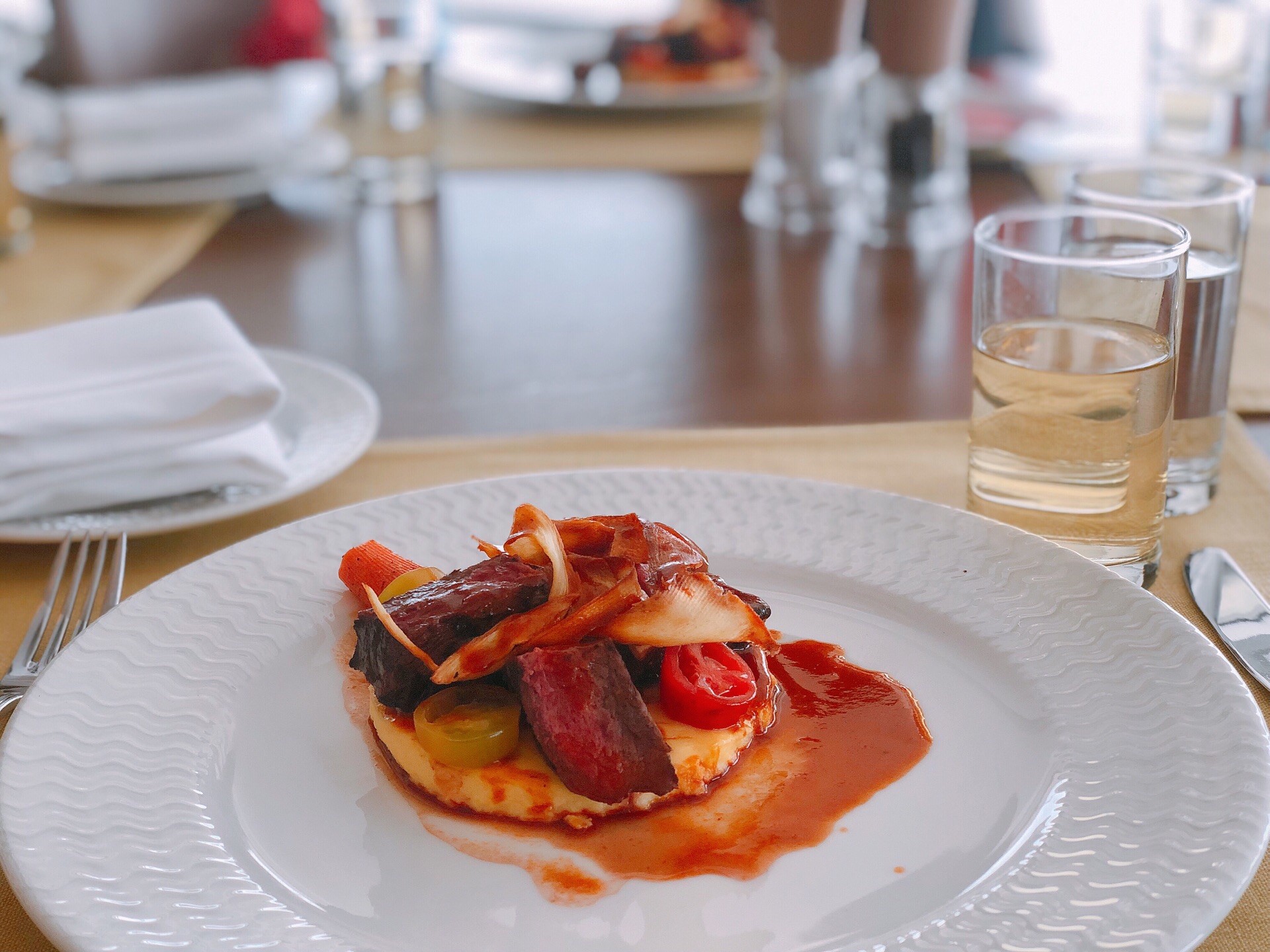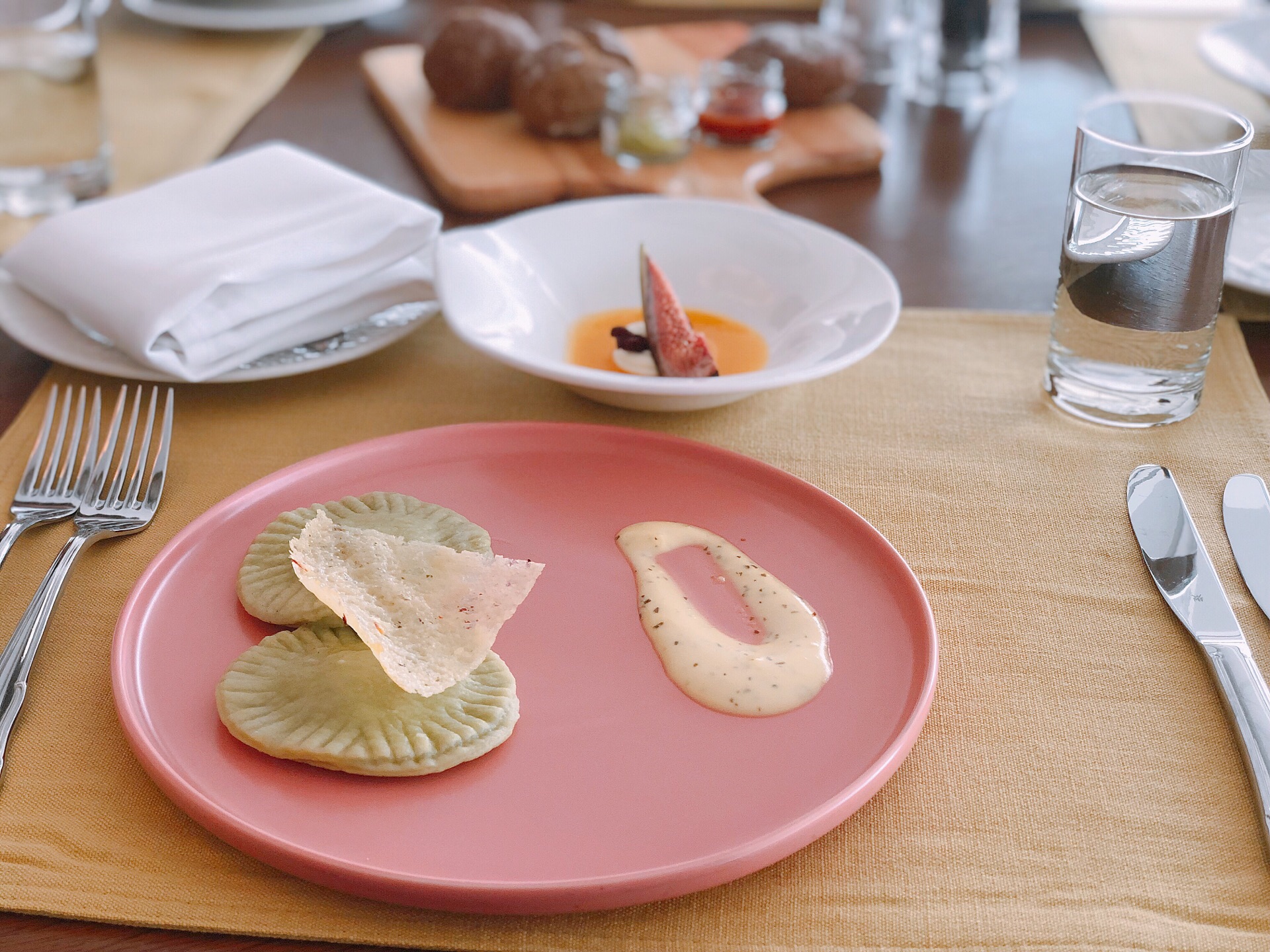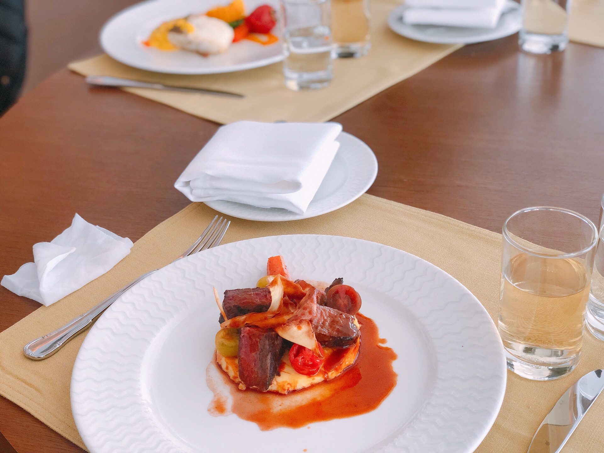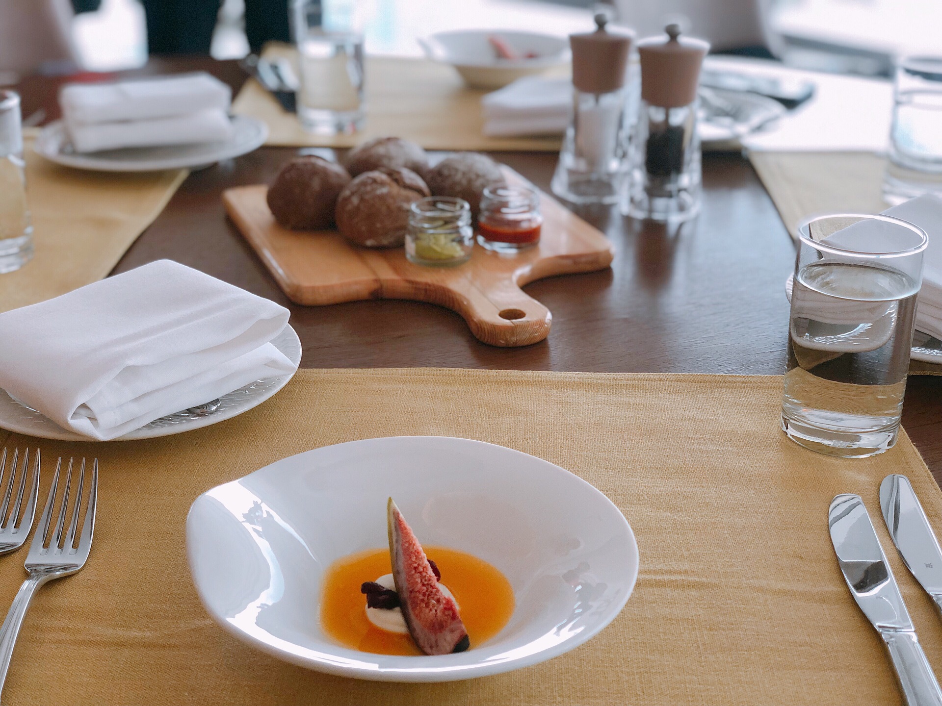 餐厅周预约来这儿的,欣赏一下上海的风光。 【口味】四个人点了两份各一样的套餐,选择的菜色其实还ok的,就是鱼有点老了。还送了麦面包,配的调料还挺好的。 【环境】在新世界大酒店的45楼,由于是旋转餐厅,可以360度观看到上海的各大知名建筑。天公不作美,有点阴天。 【服务】服务员其实还挺忙的,服务态度挺满意的。