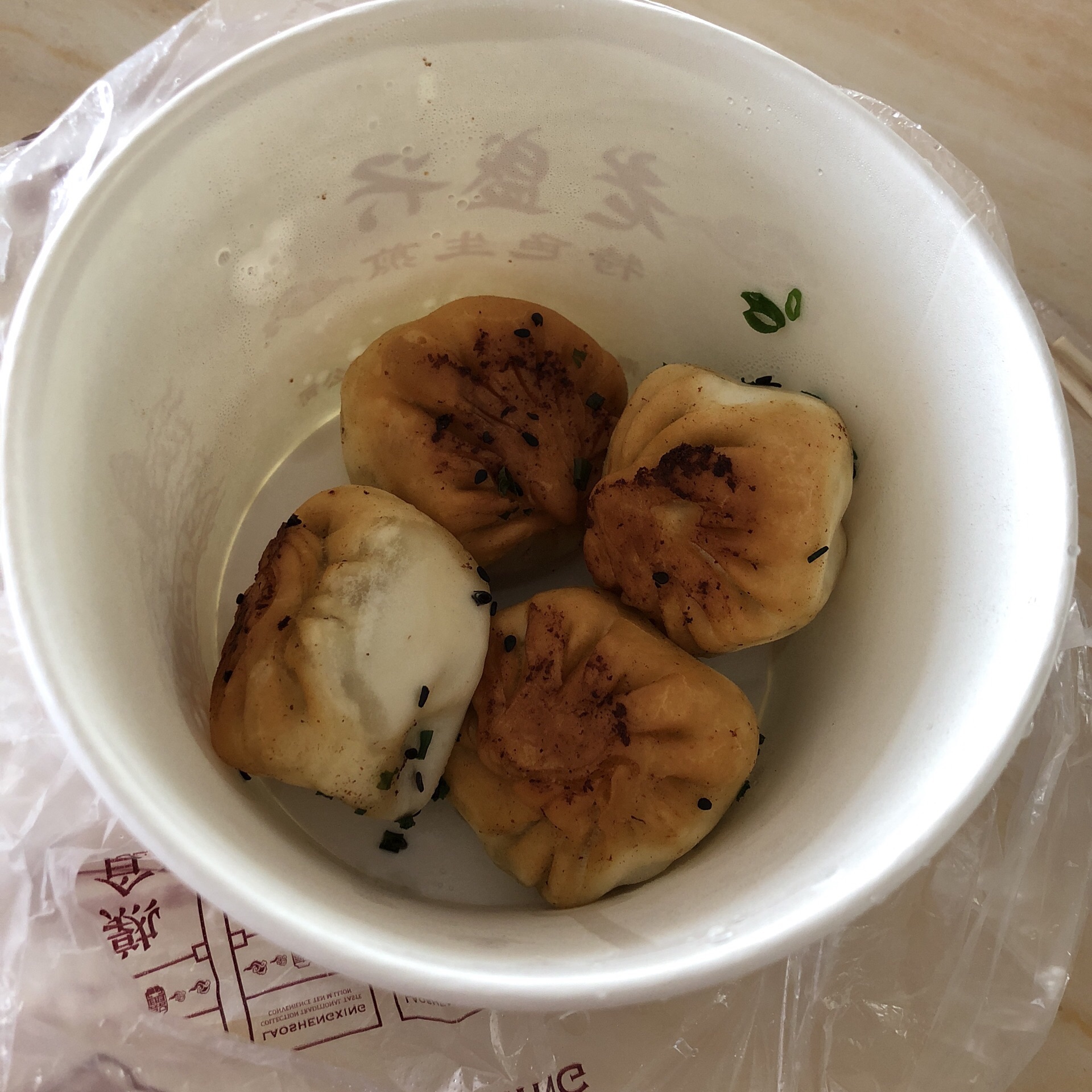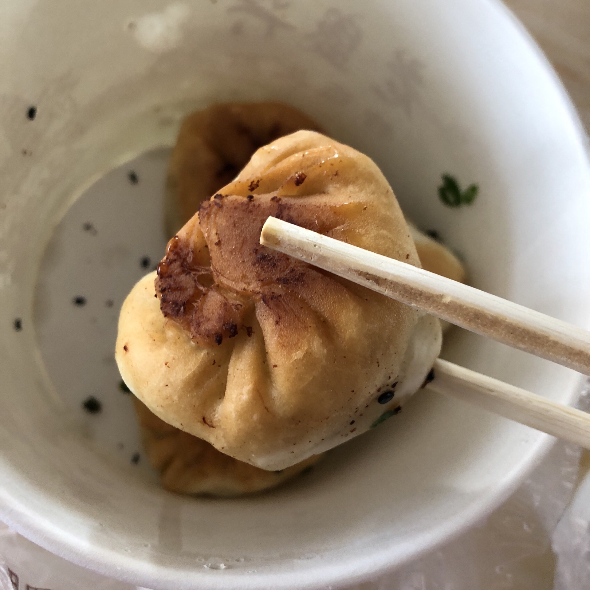 - [ ] 吃早饭还是最爱老盛兴的生煎啦,毕竟无肉不欢的饮食要从一天的第一顿就开启咯,嘿嘿嘿!个头不算太大但就刚刚好,刚出锅的很香很脆,轻轻一咬满口汤汁肉香扑鼻,嘬完汤汁蘸醋吃,里面的芯子肉质鲜嫩,外皮很薄底很脆,好吃