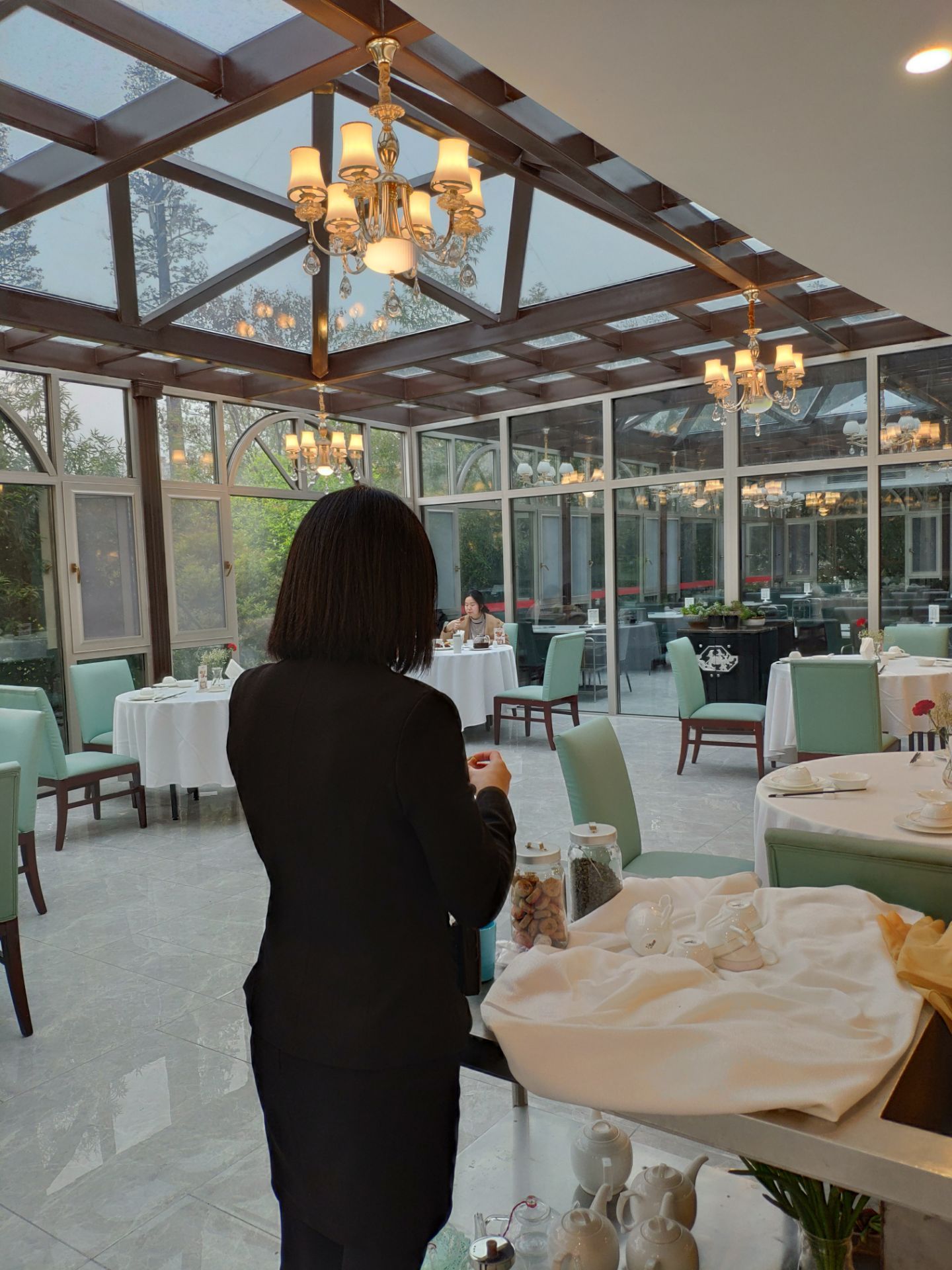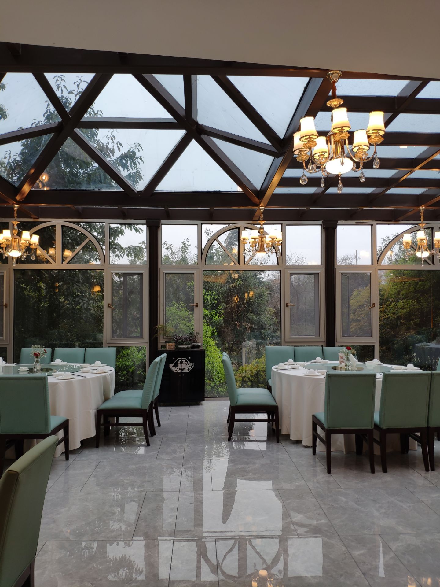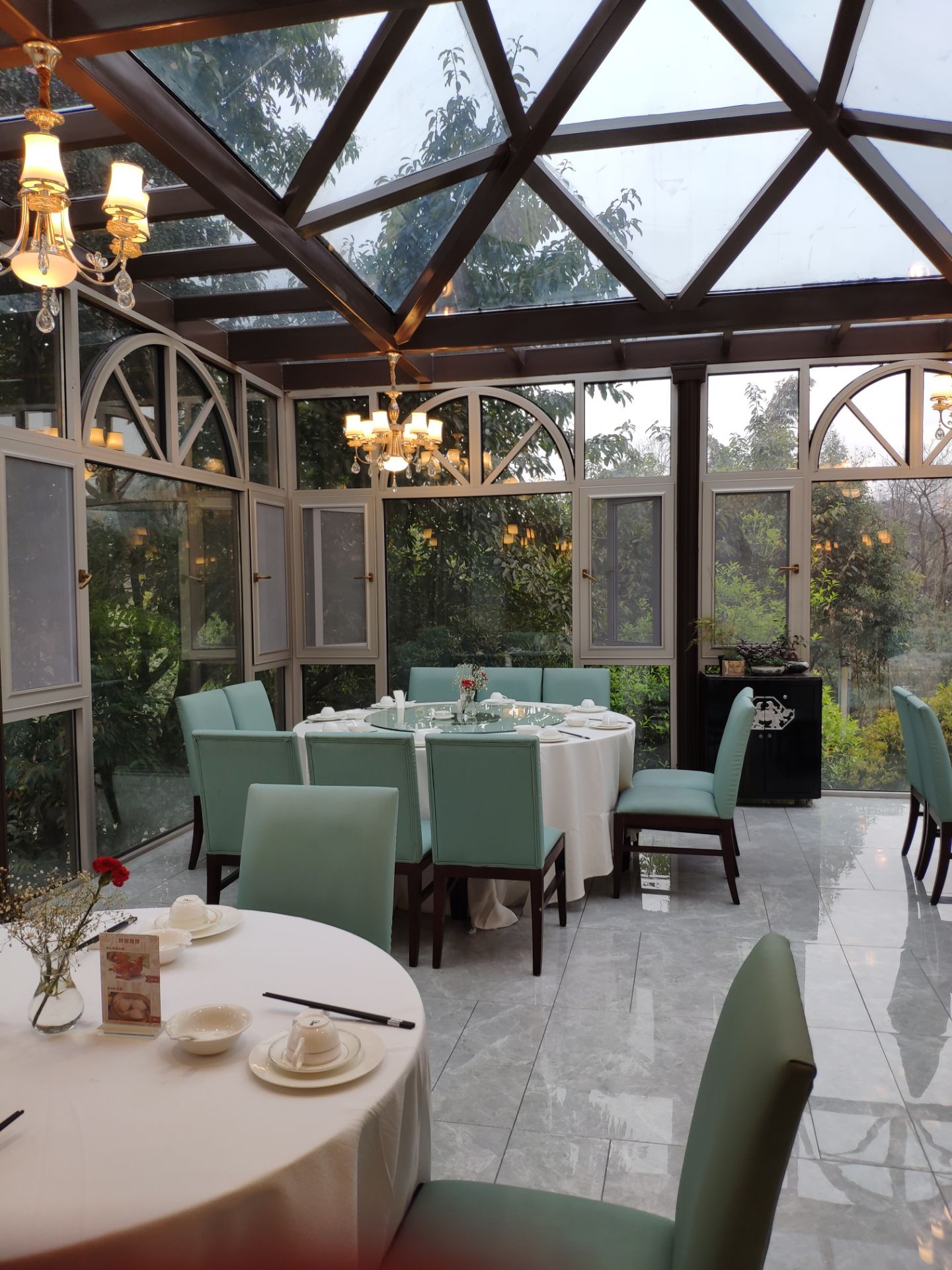 口味:四星 环境:四星半 服务:五星 突然起了吃粤菜的瘾,正好看到这家优惠力度大,就直接过来了。 [环境]在西苑半岛宾馆的二楼,外面是河鲜,里面是港式茶餐厅。茶餐厅装修特别小清新,玻璃屋顶很通透,窗外望出去满眼绿。 [服务]看得出来有培训,态度很好,倒茶也积极。 |西苑虾饺皇^基本都是虾,货真价实。 |紫金酱蒸凤爪^不算特别耙,偏甜。 |干炒牛河^炒的很香,牛肉也多。 |鲜虾烧麦^很实在的口感,挺好的。 |皮蛋瘦肉粥^里面的肉片很实在,清淡。 |榴莲酥^榴莲味有点重,好吃。 |凉拌土鸡^醋味重,很开胃,鸡肉有点小份。 还有几个菜没有吃完打包回家了,总体觉得很不错,也特别好停车。
