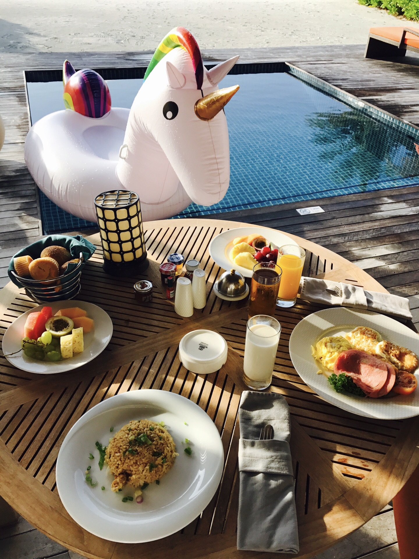 马代的岛屿众多,翡诺岛是很值得推荐的一个,环境当然没得说,由于岛屿上人数比较少也是明星岛屿,私密性极好,有沙滩别墅和水上别墅,去的话都可以体验下,这个岛屿是一价全包,每一餐都非常丰富,也完全不用担心饮食不习惯的问题,早餐可以在别墅使用,也可以去餐厅,是一个很适合蜜月发呆的地方