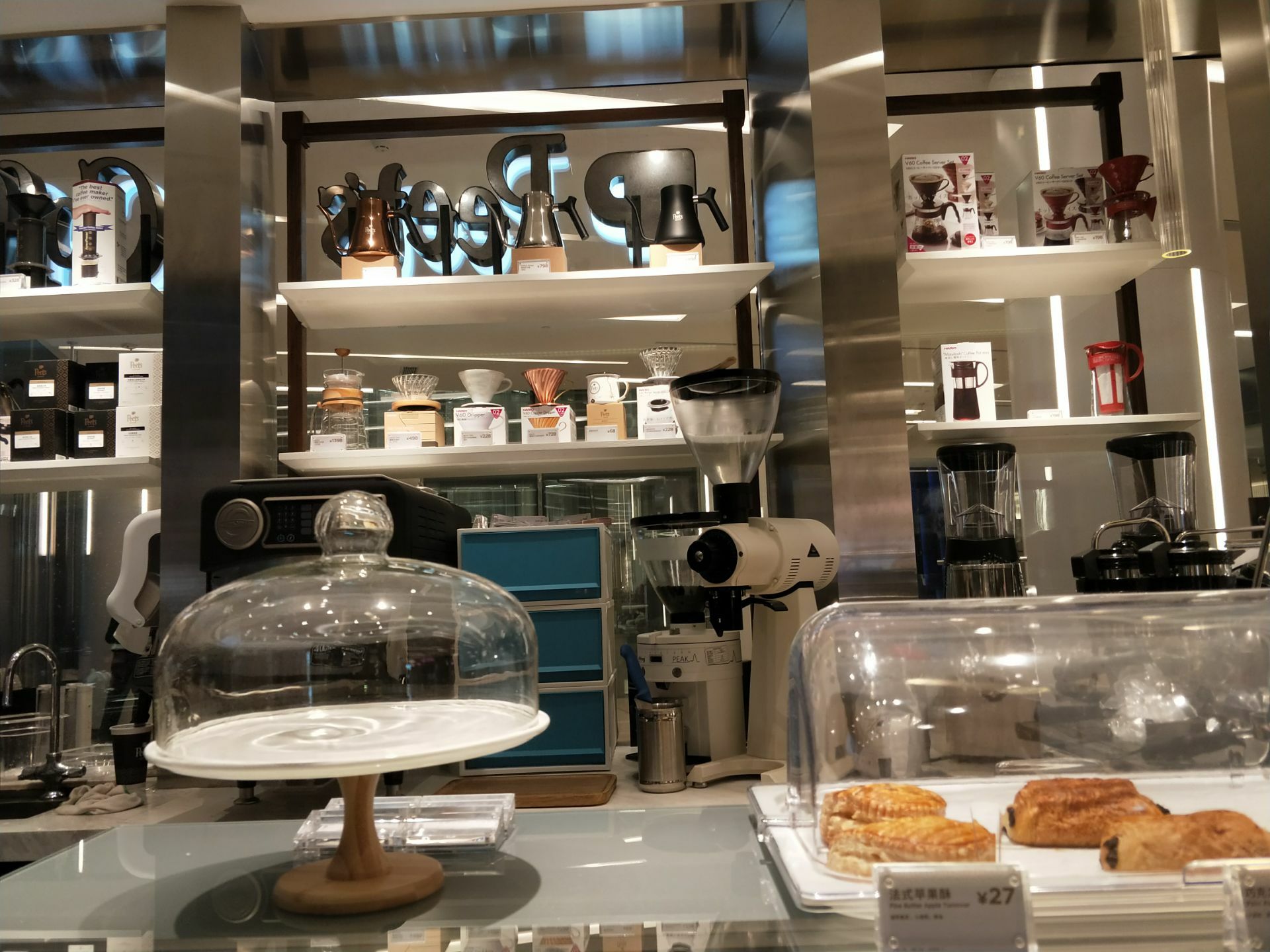 现在每次来陆家嘴中心,都会喝一杯这里的咖啡,也不是因为它家的特别好喝,而是其他几家的咖啡真的不咋的。才晚上八点多,可供选择的咖啡品种就很少了,只有传统的那几款,个人觉得在这个商业繁华地段不太合适,前几次一直喝的是双子星,这次换成焦糖玛奇朵,奶味还是很浓的,晚上不会觉得咖啡味太重。