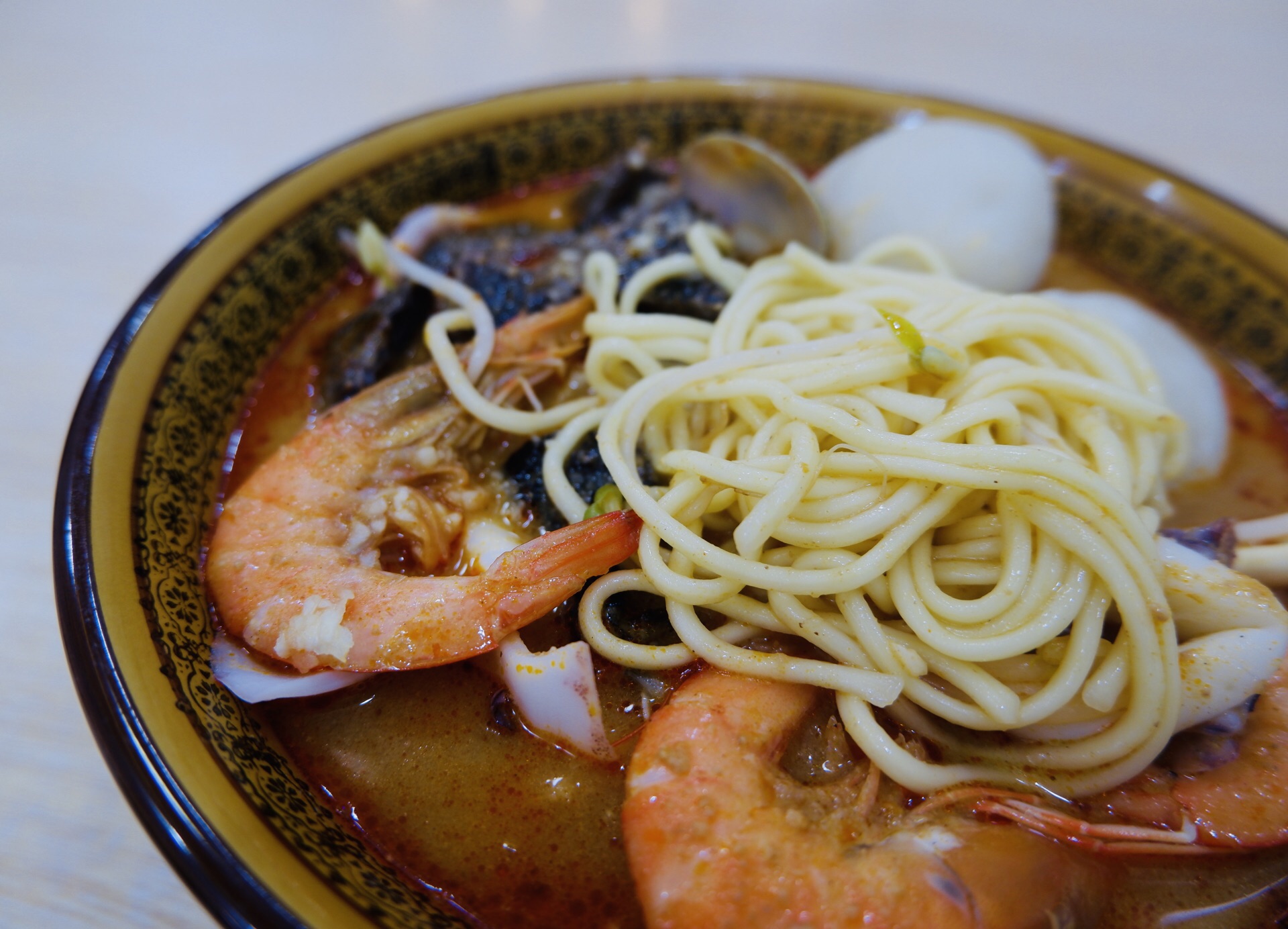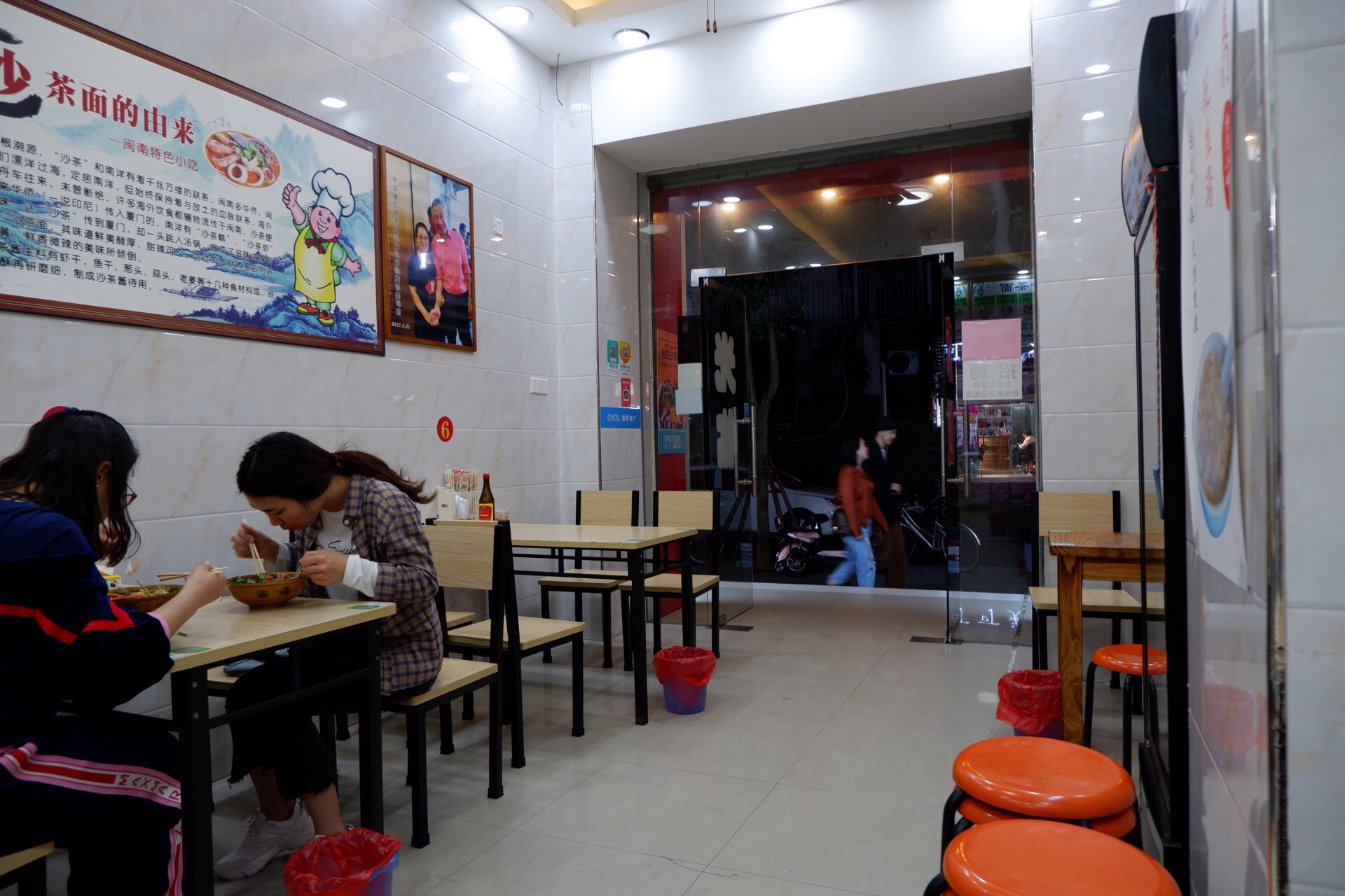 老四沙茶面 在厦门大学生活区附近吧,因为这家店是夏大店,我是在寻找避风坞的时候看到的这家沙茶面,然后去就去了。 位置-蜂巢山路9号之2,隔壁是锦江之星 个人觉得不用刻意的去找哪一家沙茶面,基本上也没有哪一家是特别的美味,大概是在我的眼中沙茶面都一样吧。 环境-看着还是很干净的,对于这一条街来说,厦门不算一个多么干净的城市,但是他们要的就是这种有年代感的味道,会显得更加有风味。 服务-漂亮的阿姨态度还是极好的,上菜速度也是很快的。 口味-海鲜沙茶面 ¥37.00 料很足,海鲜也还算新鲜,毕竟已经是沿海城市了,隔壁又还是菜市场哦,沙茶面的汤我有点点感觉像冬阴功汤了,大概是我自己加了点醋吧,花生酱和醋的完美结合,这个汤变好喝了; 青团,里面的陷是酸菜肉的,原本以为是家里类似的味道,但是真的不能比,这里的太难吃了,我对厦门的糯米制品失望至极,太糟糕了,25元4个,价格也是非常的贵了,主要是还难吃,青团不糯,馅料不好吃。 在这里吃一碗沙茶面就可以了,不要点什么其他的食物了,会失望的。