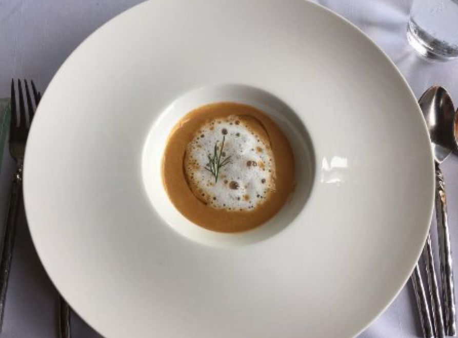 餐厅气氛也非常私密高端,专修很有设计感,氛围很安静,背景音乐也很好听。菜品中上等,非常不错,摆盘很精致,前菜的三文鱼非常棒,意面一般口感偏干,甜品过甜,有一点点腻。门口有很多荣誉,获得过不少奖项。服务员很好,非常细心。