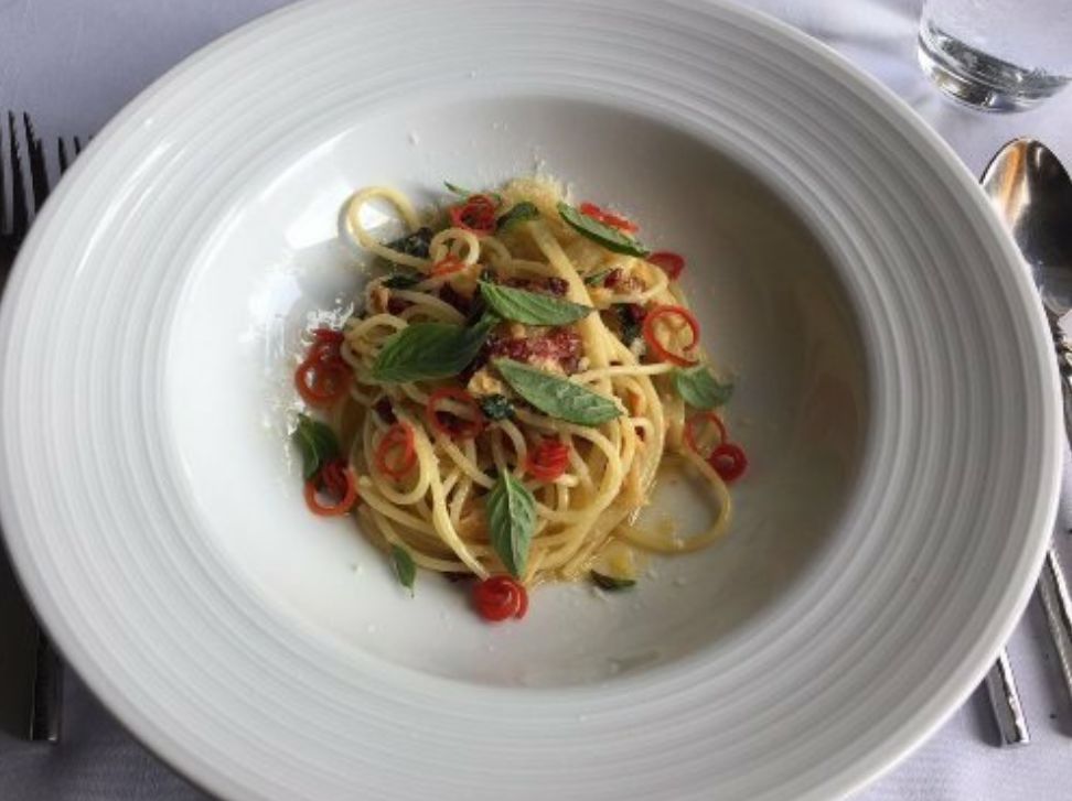 菜品中上等,非常不错,摆盘很精致,前菜的三文鱼非常棒,意面一般口感偏干,甜品过甜,有一点点腻