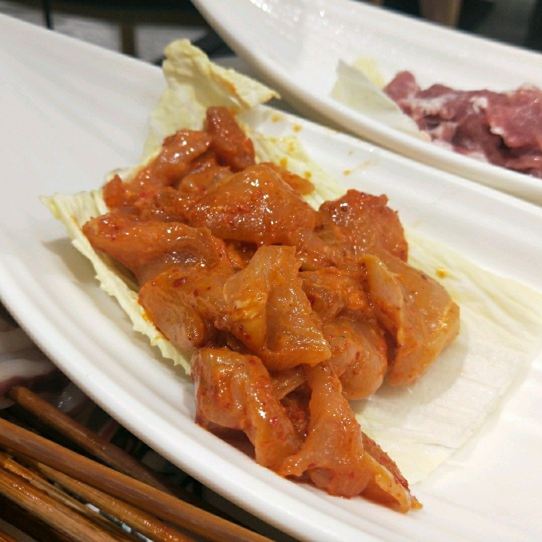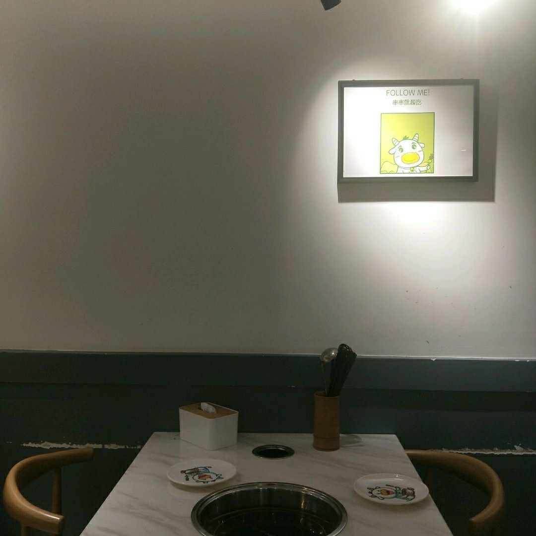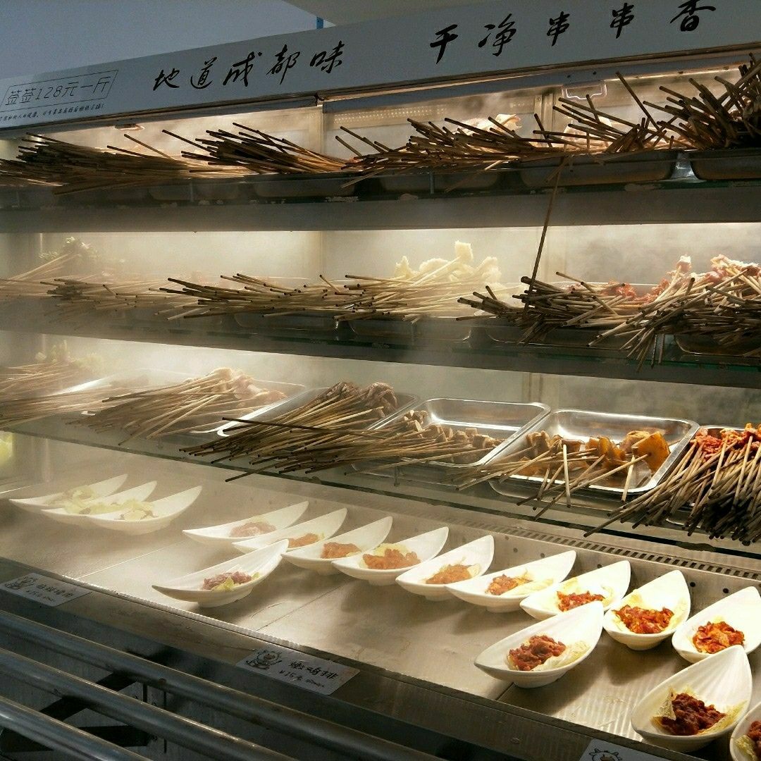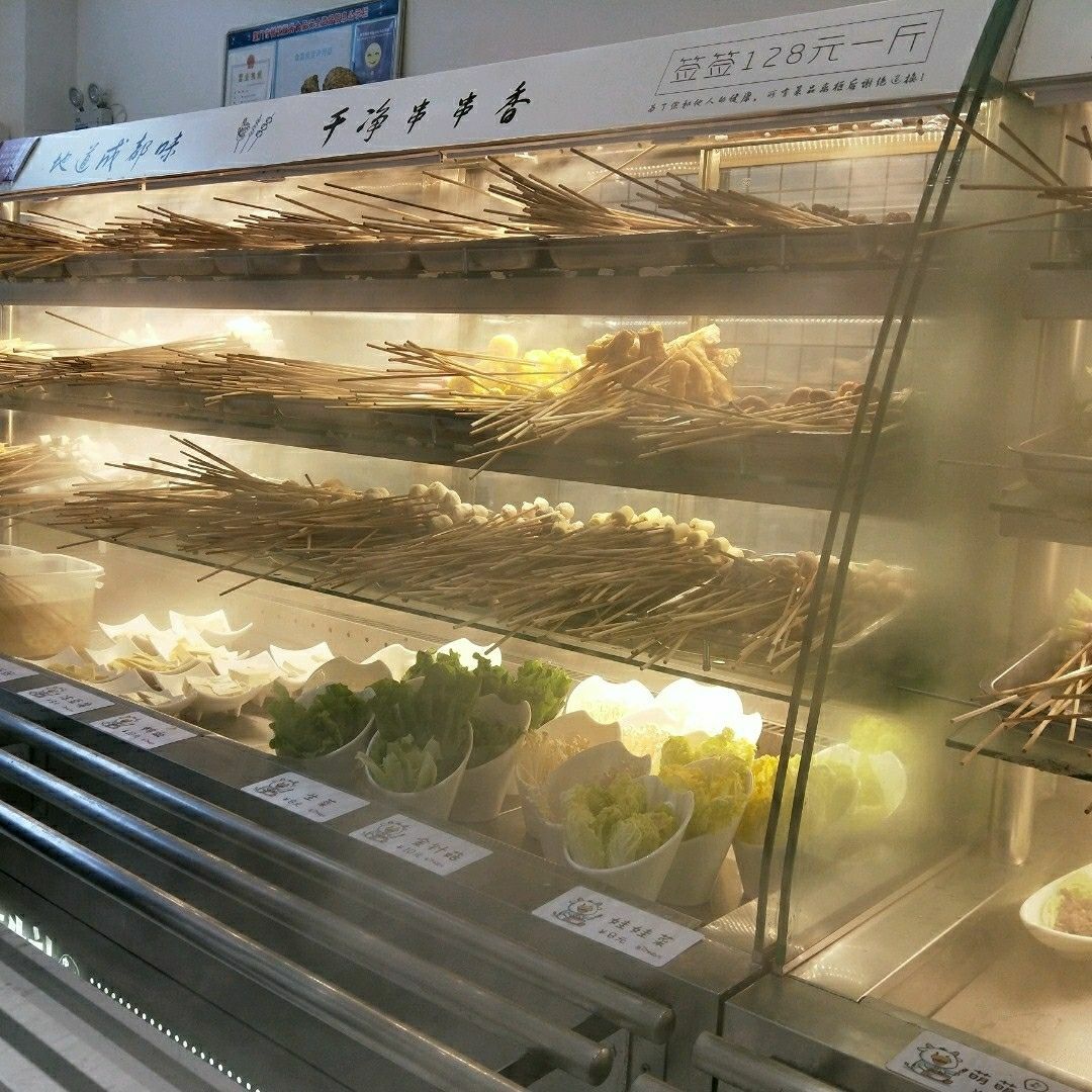 和朋友看完电影就开始觅食,逛着逛着就看到这家店~明明是串串火锅店,店面却是ins冷系风~ 一共有两层楼,选在一楼拿菜方便~ 店面不大,串串有两个冷柜,一个荤菜一个素菜,49一个人的自助串串性价比很高,锅底味道也不错,最后和朋友外边聊天边吃就不知不觉吃了很多[呲牙] 牛肉和嫩鸡排应该会很受健身者或者减肥小伙伴的欢迎~ 还有服务小哥哥态度超好~