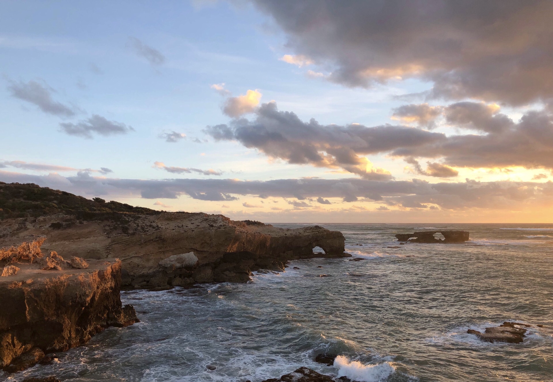 也一样是悬崖峭壁,海涛汹涌的拍打着,泛着泡沫。到了Robe,正是落日的时间