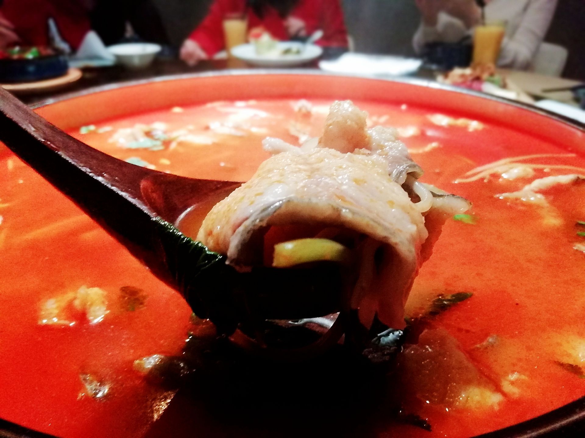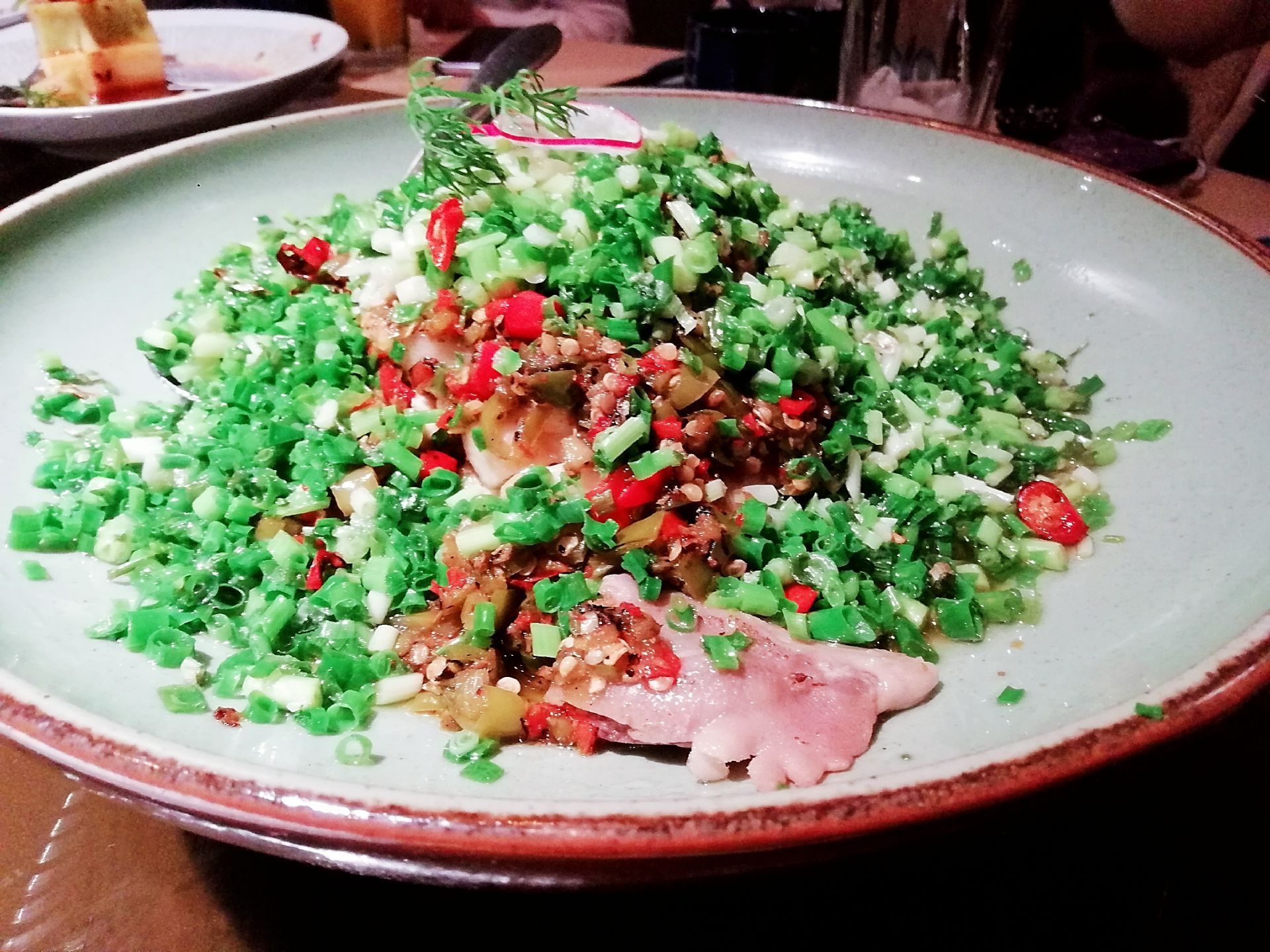 点了贵州特色的酸汤鱼,非常好吃。厥巴炒腊肉也很好吃,并且有特色,厥吧口感劲道,味道好。强烈推荐