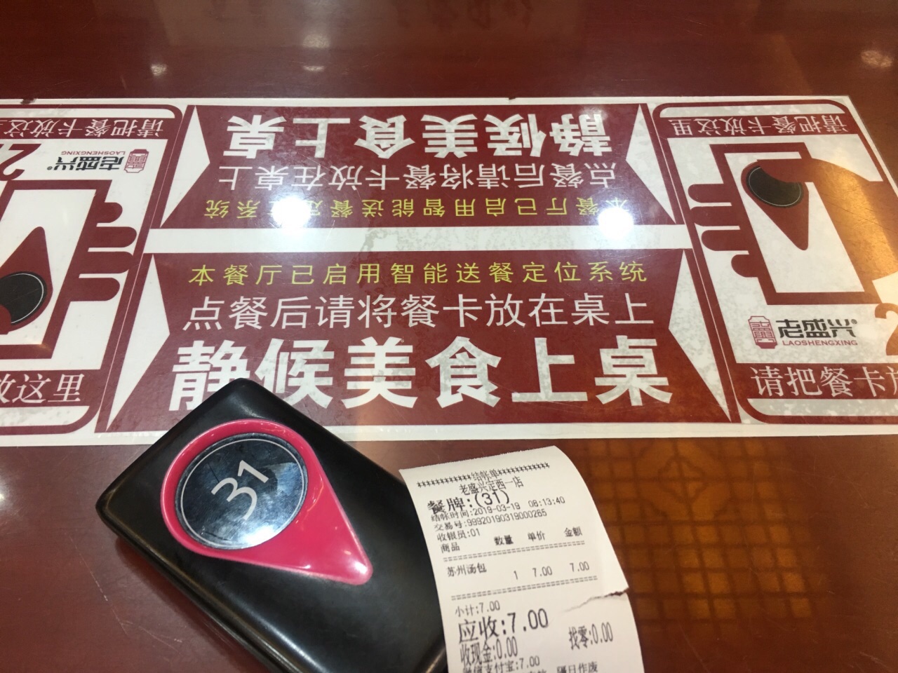 前台点餐付费后,会给一个智能定位系统,找到空位把它放在桌子上,服务员会自动把美食送上桌