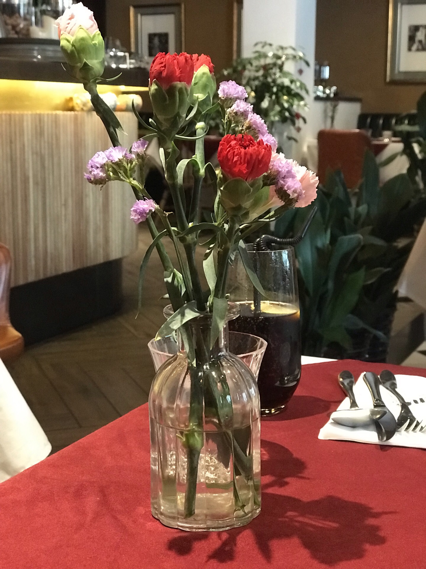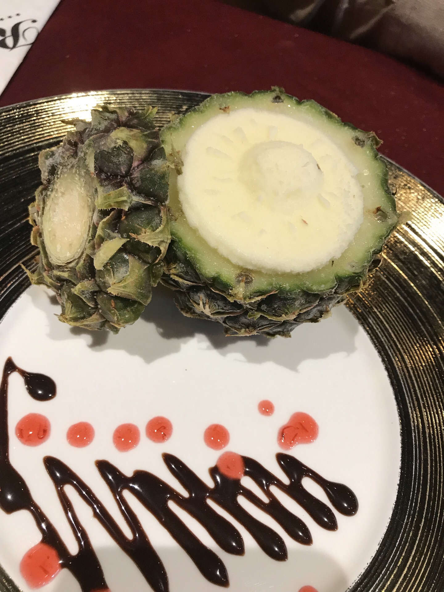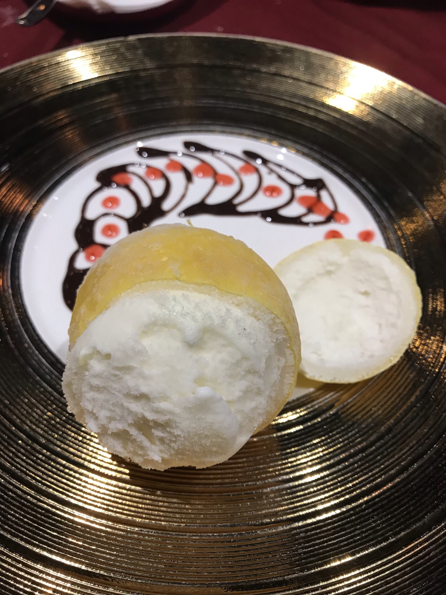 中午两个人想来想去还是吃牛排吧,不愿意开车就只能家里附近了。Rina就在嘉里中心旁边的铜仁路上,中午人并不是很多,服务员拿来了菜单都是午间套餐,我们挑了个最贵的398好像,主食是M7的澳洲和牛肉眼。本来还想着为毛没有单点的菜单,因为先生一直不喜欢套餐的形式。吃完觉得还好没单点,真的不值得。餐前面包很好吃,牛排的品质很不好,五分熟煎得还行,表面略硬,里面有汁水,但口感并不好。龙虾汤和低脂沙拉都还不错,服务也过得去。要吐槽的是餐后甜点不是雪芭吗?可我吃的明明就是冰淇淋呀[发呆],造型倒是蛮好看的,可店家真应该尝尝弗兰克,大马可家的柠檬雪芭是什么味道!?咖啡太酸不好喝,加了糖反而把酸味更带出来了,自作聪明的挖了一勺冰淇淋,怎么都不对味,就此拔草了!忘了说去洗手间的时候路过放牛排的冰柜,先生说后悔没有先上厕所,看到那些的品相就已经没有胃口了。