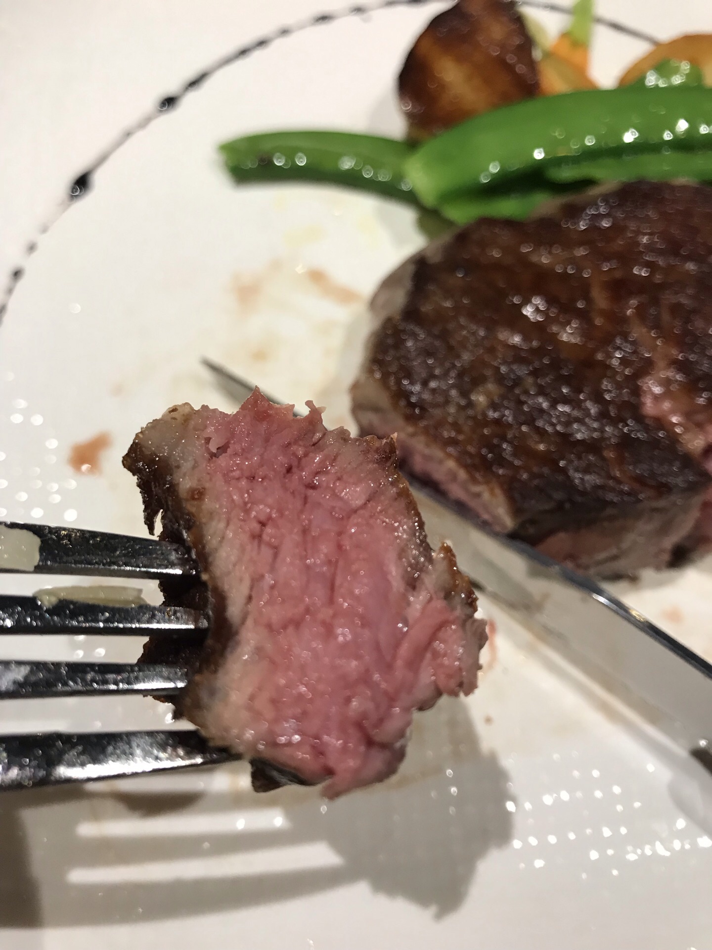 餐前面包很好吃,牛排的品质很不好,五分熟煎得还行,表面略硬,里面有汁水,但口感并不好