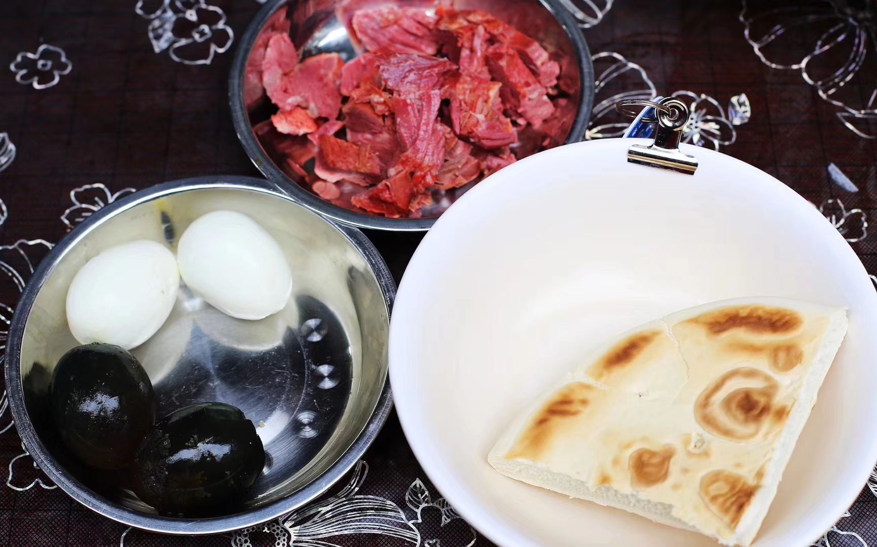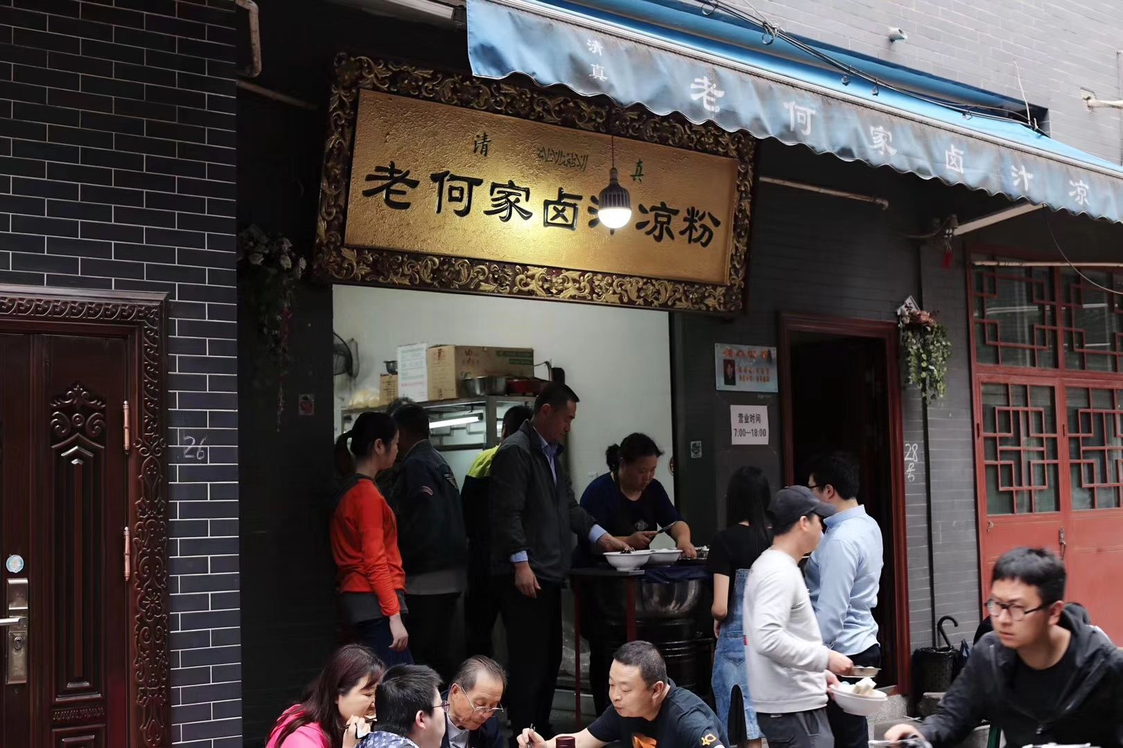 老何家卤汁凉粉,据说这条巷子都是这家店带火了,还遇到好多游客,这家凉粉很有意思,加入卤汁、皮蛋、煮蛋、馍、卤牛肉。调料则加入了芝麻酱、蒜泥、红油辣子,最最有意思加入了芥末,我觉得好奇葩哦,但是本地人还多喜欢的。
