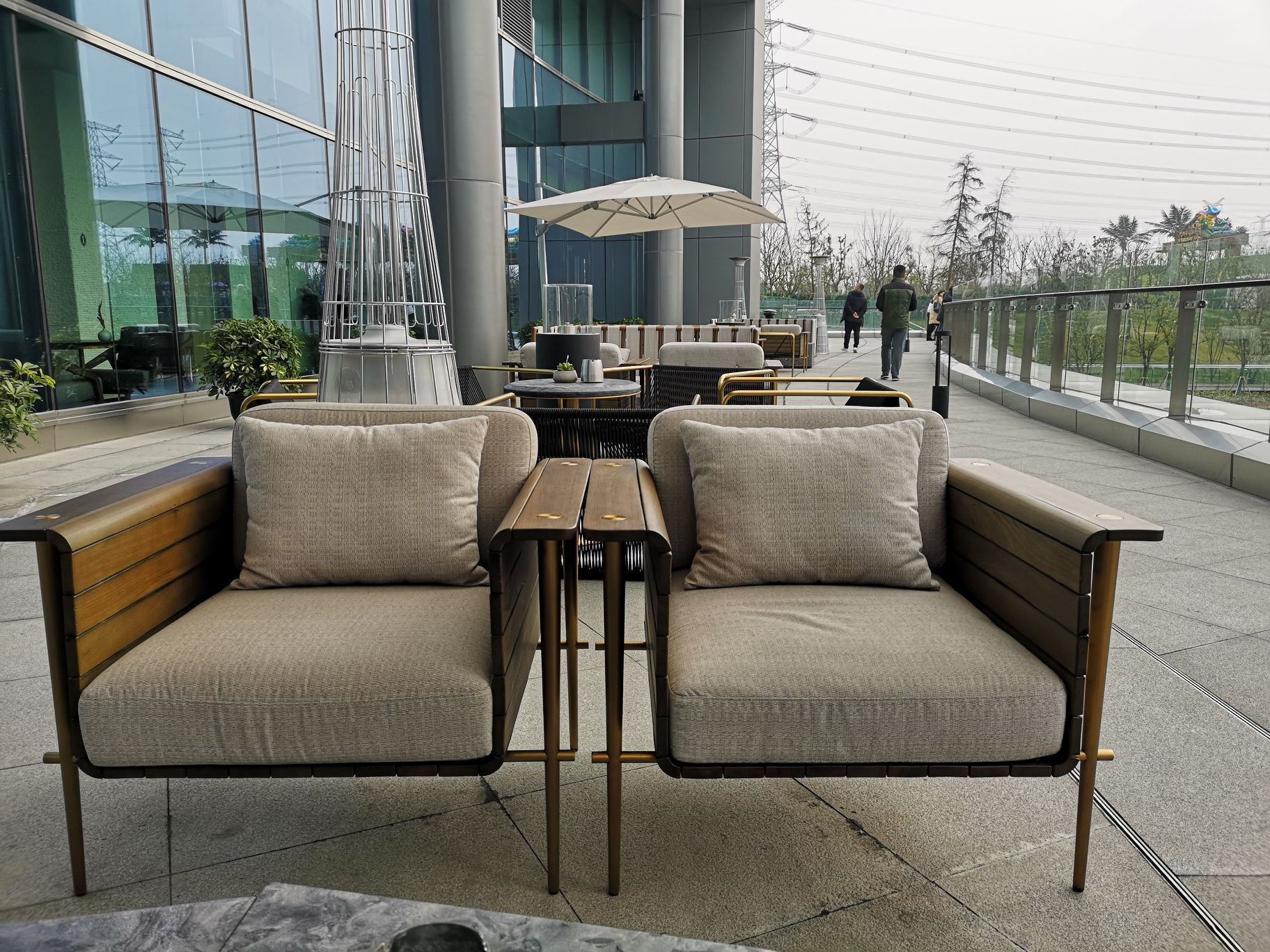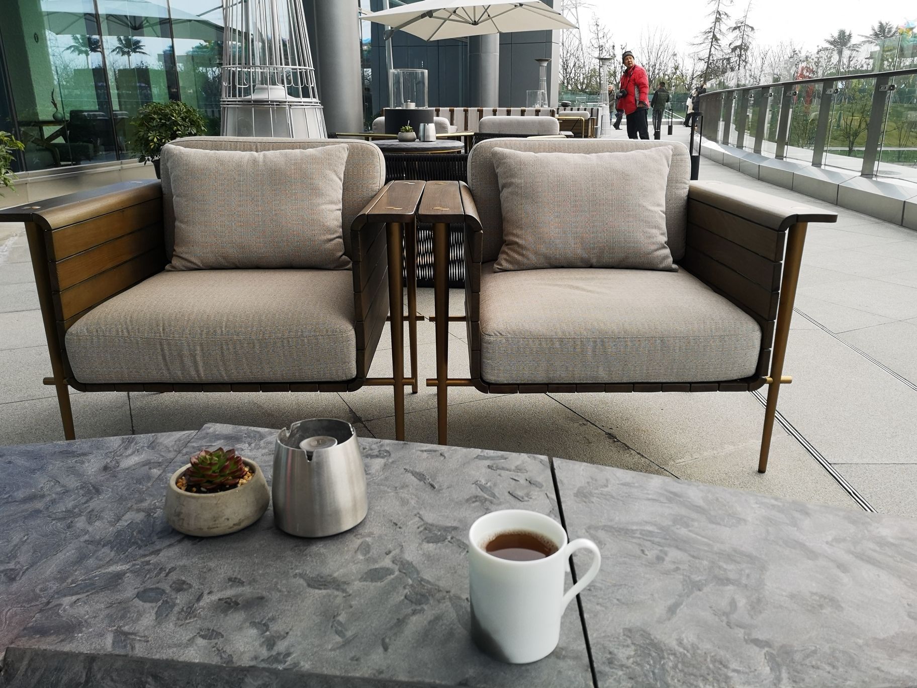 入住赠送欢迎饮品,为了清静选择在室外用餐,尽管有点小冷~深坑酒店内的大堂吧--云间九峰