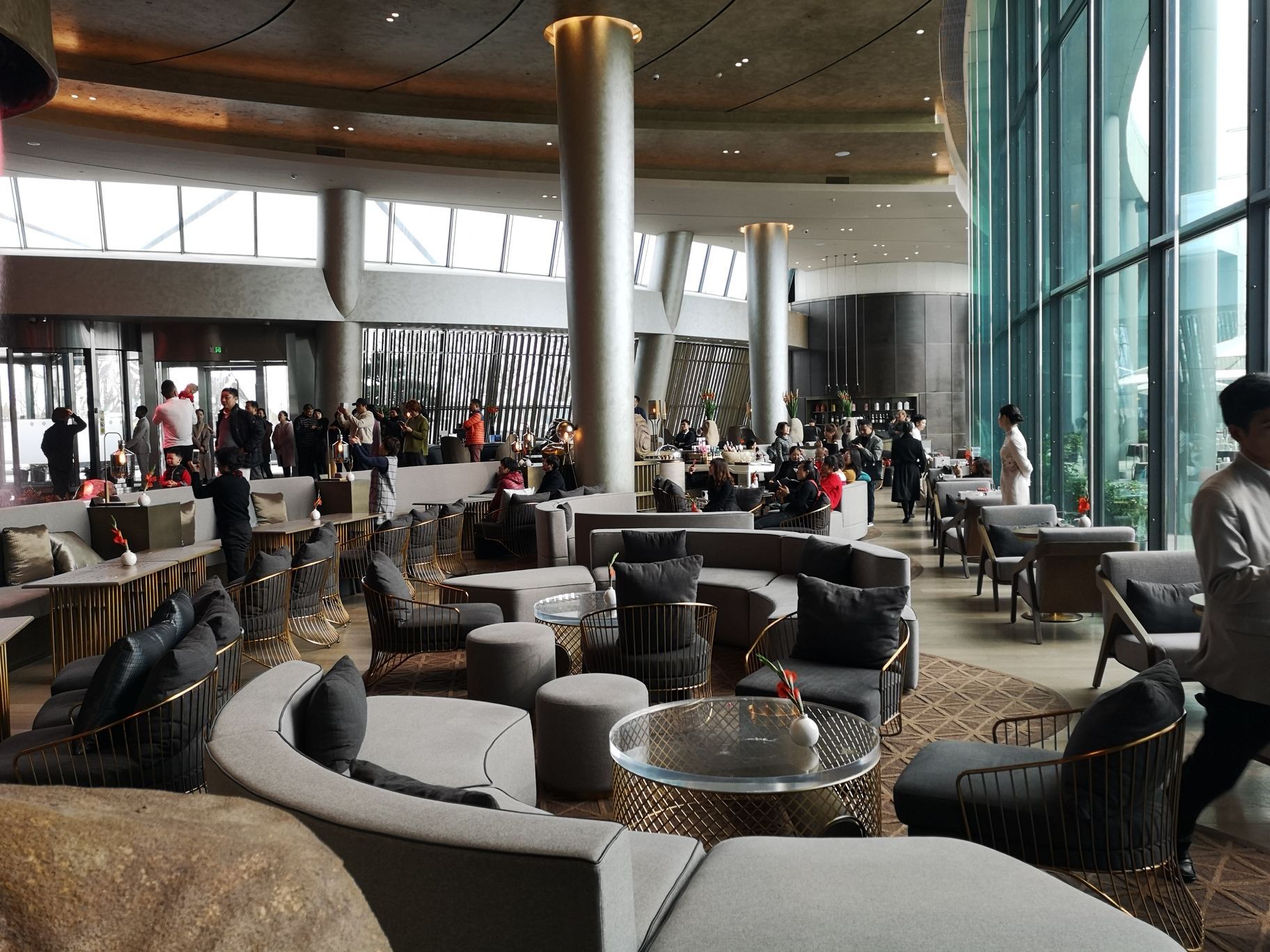深坑酒店内的大堂吧--云间九峰~ 说实话,硬件环境不错,进门后大堂有接待台,左边就是大堂吧~ 不过主要是参观的游客太多了,也许定了下午茶、或者预定了晚餐,再加上入住客人,所以总觉得大堂人很多嘈杂,这个感觉很一般~ 入住赠送欢迎饮品,为了清静选择在室外用餐,尽管有点小冷~ 因为客人多工作人员有点忙碌,不过有位姓单的菇娘服务不错,很有耐心,好评~