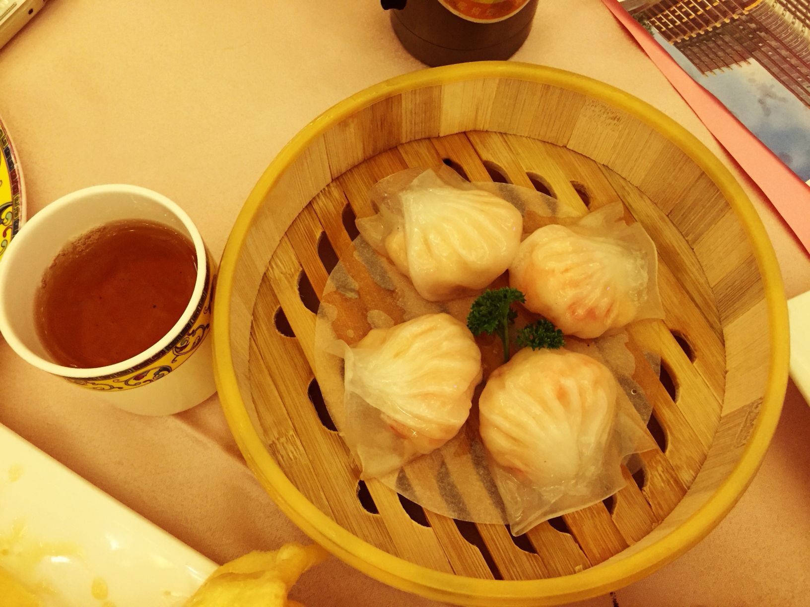 特别正宗的广东料理,早茶特别美味。由于住的酒店就在这家饭店附近,所以早中饭就在这家饭店里吃了由于住的酒店就在这家饭店附近,所以早中饭就在这家饭店里吃了。特别正宗的广东料理,早茶特别美味。每一个小蝶都是很精致的摆盘,看着就很不错。价格也特别公道。