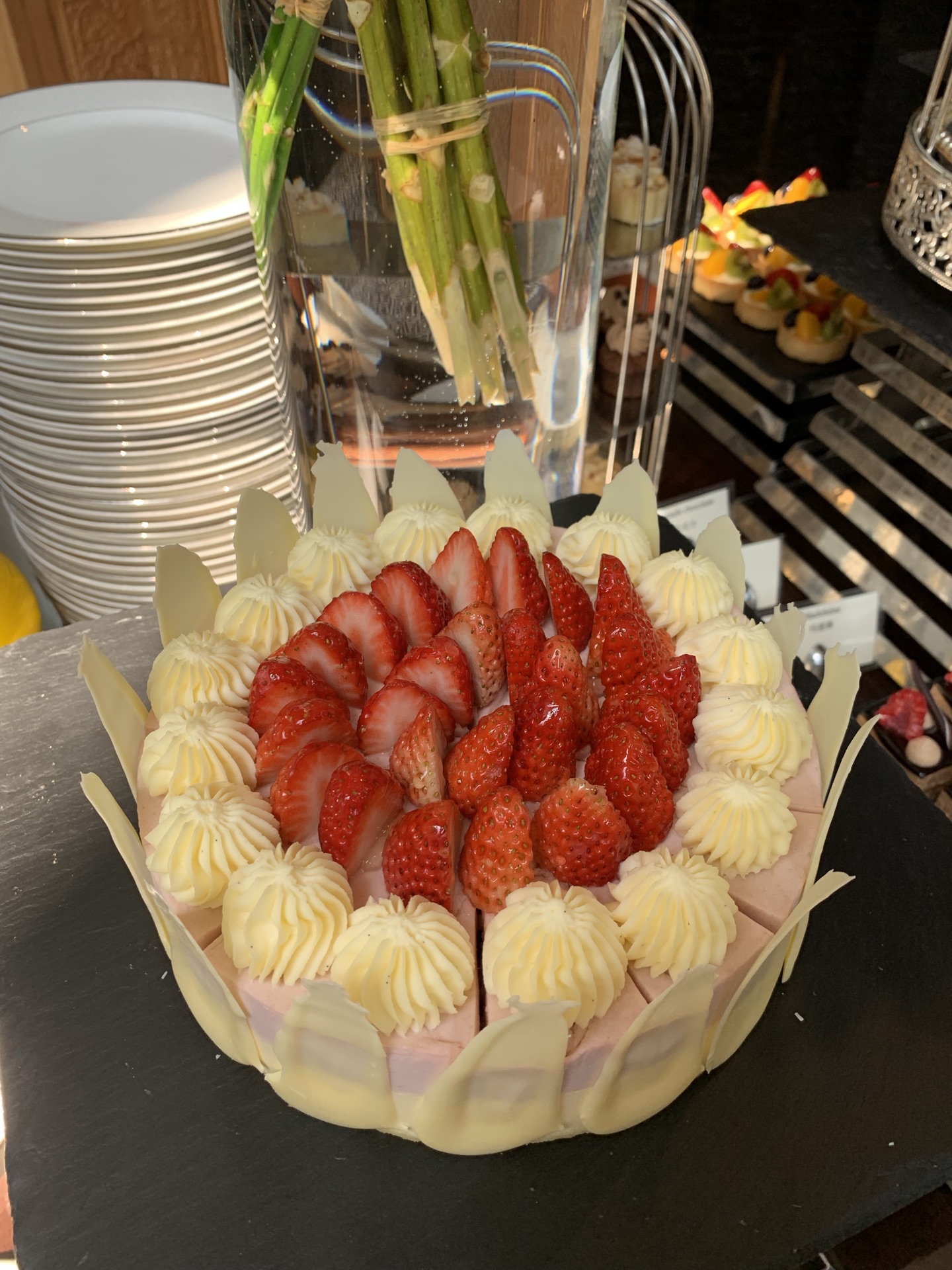 酒店位于新天地,环境优美,自助餐品种好多,三文鱼特别新鲜,甜品有很多种,目不暇接,也非常好吃。大厨服务态度超好,亲自给我介绍菜品。 可以从午餐吃到下午茶,然后扶墙出去。非常适合周末,约朋友、家人一起休闲聚会。下次带爸爸妈妈来吃,太赞了。