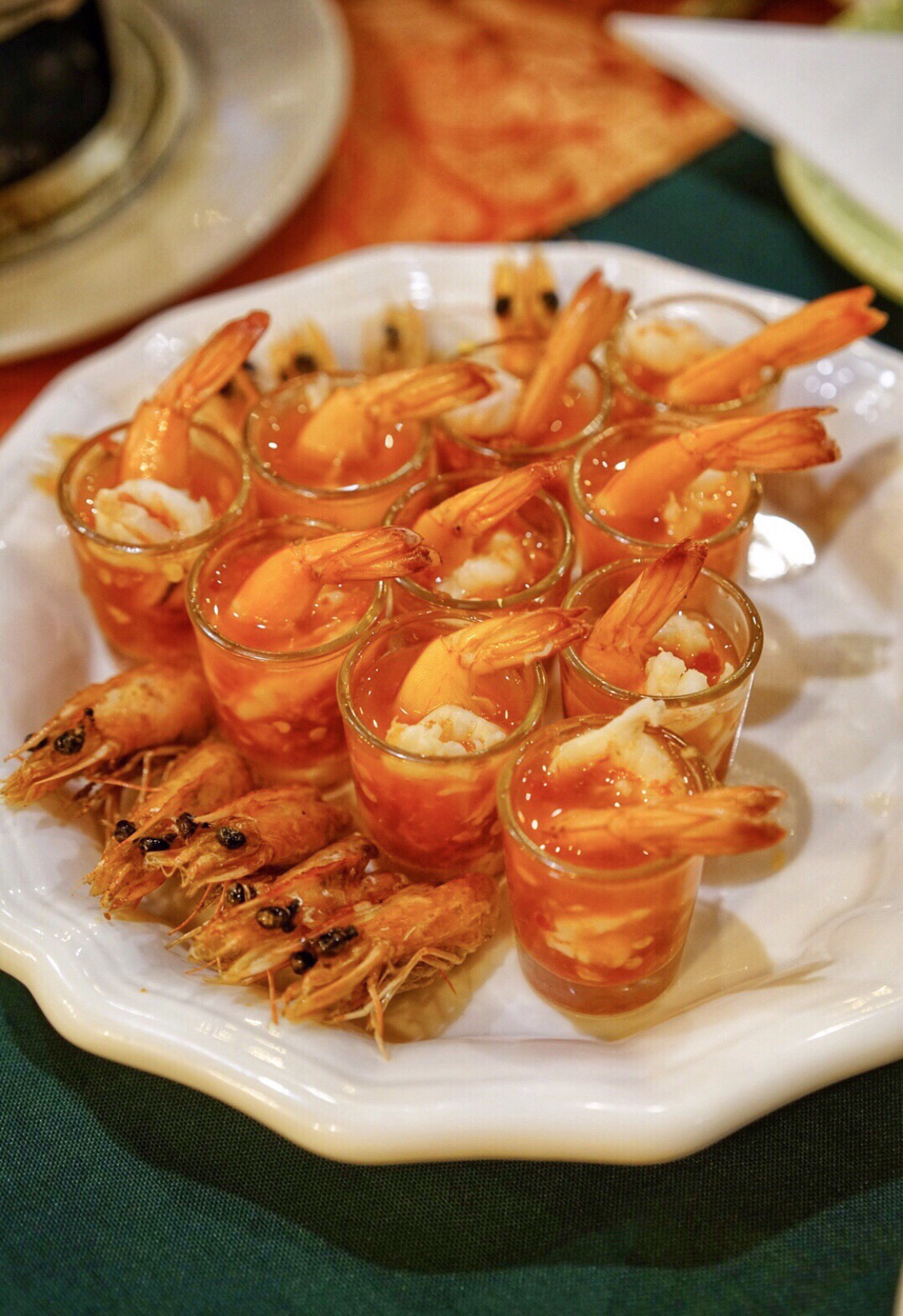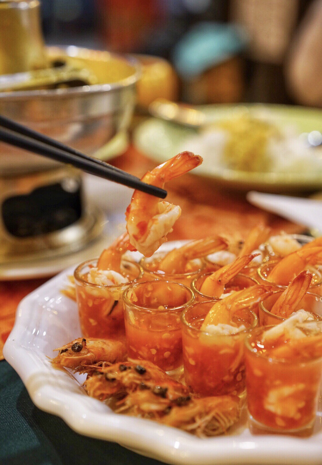 软糯的土豆,嫩滑的鸡肉,在咖喱汁的映衬下口感愈发鲜活起来。 香茅浸虾,开胃首选