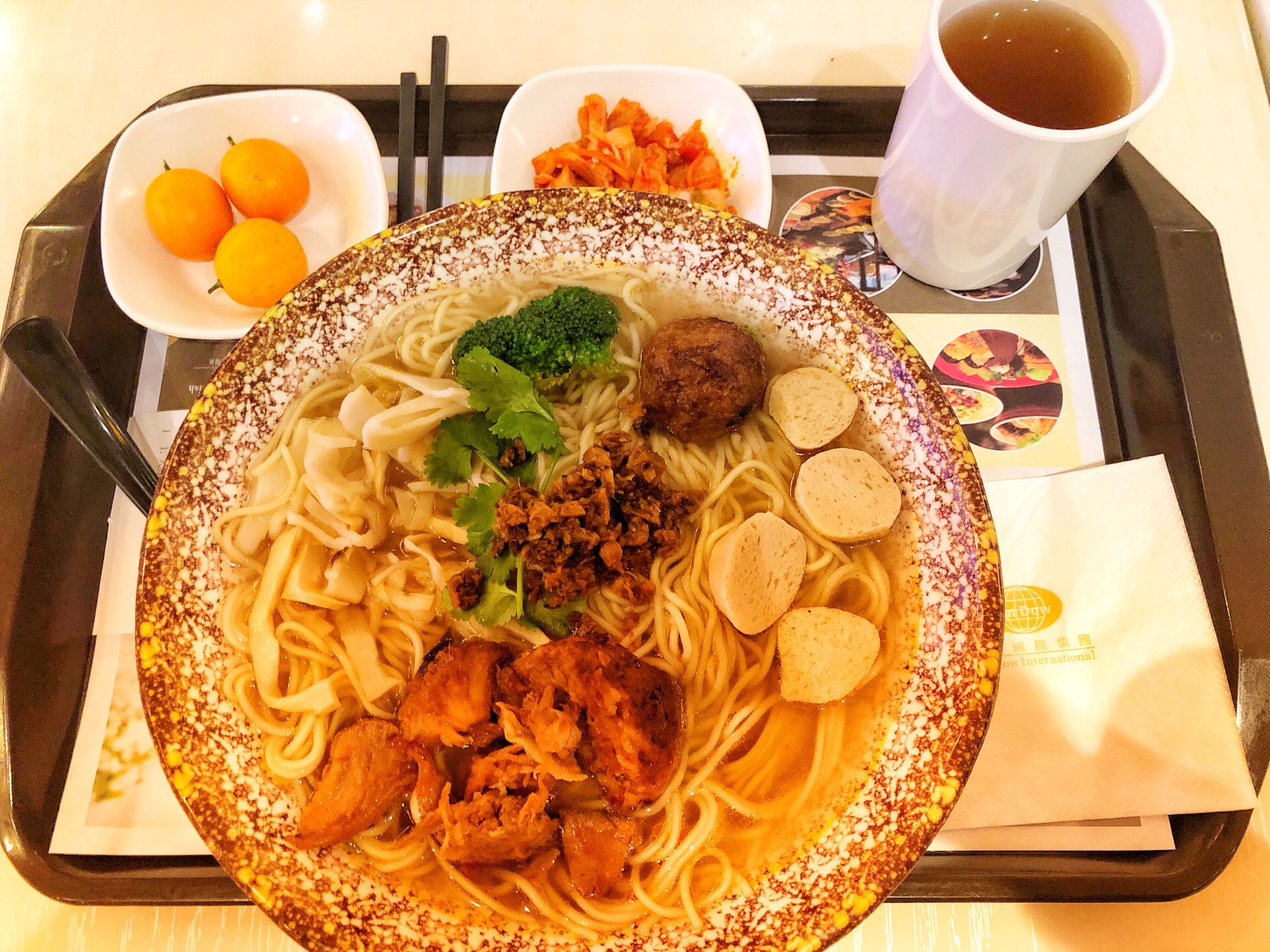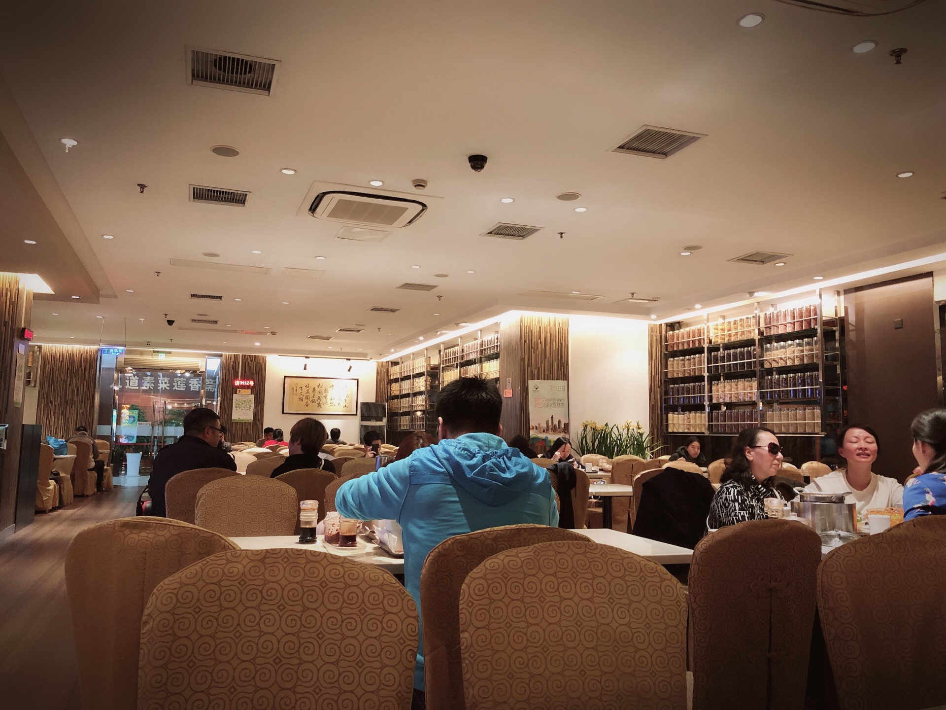 在2楼吃过自助,一楼买过面包,这次来尝试素食,赶上阴历二月十九菩萨生日,人还不少。 有很多选择,最后选择了招牌素面,35元。猴头菇、笋等,笋片薄而爽口。 还有一杯茶、一份泡菜和一份水果。 适合一人食,是夏天女生们的另一种选择。 收银阿姨有点耳背,只顾忙自己的,旁边老阿姨问他青团怎么卖都不理人家,服。