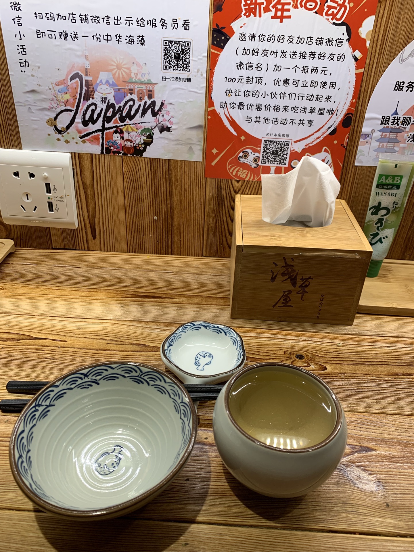 临时决定在万达广场附近吃完饭,搜索到了这家浅草屋寿司。位于万达金街,店面不大,日式的风格略显局促。团了一个单人餐,拉面、水果蔬菜色拉、手握寿司,色泽鲜艳让人食欲大开,菜的量还可以,适合一个人的食量。拉面的汤头很醇厚浓郁,寿司用料新鲜,色拉鲜脆香甜。给个满分,期待下次更上一层楼的用餐体验。