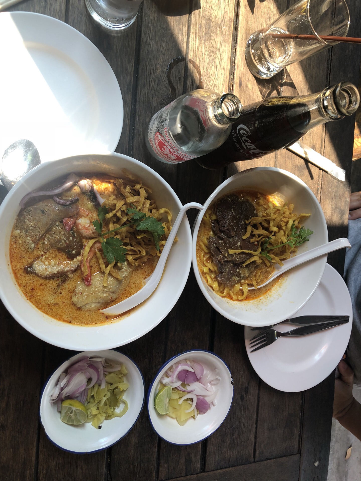面很好吃,也不贵,就是饭点可能要等位,好吃的招牌面加牛肉面,还有4串烤牛肉就一般般了,肉的表面...宁曼路上说是邓丽君喜欢的咖喱面,面很好吃,也不贵,就是饭点可能要等位,好吃的招牌面加牛肉面,还有4串烤牛肉就一般般了,肉的表面有像花椒一样的香料,炸大虾也还好。