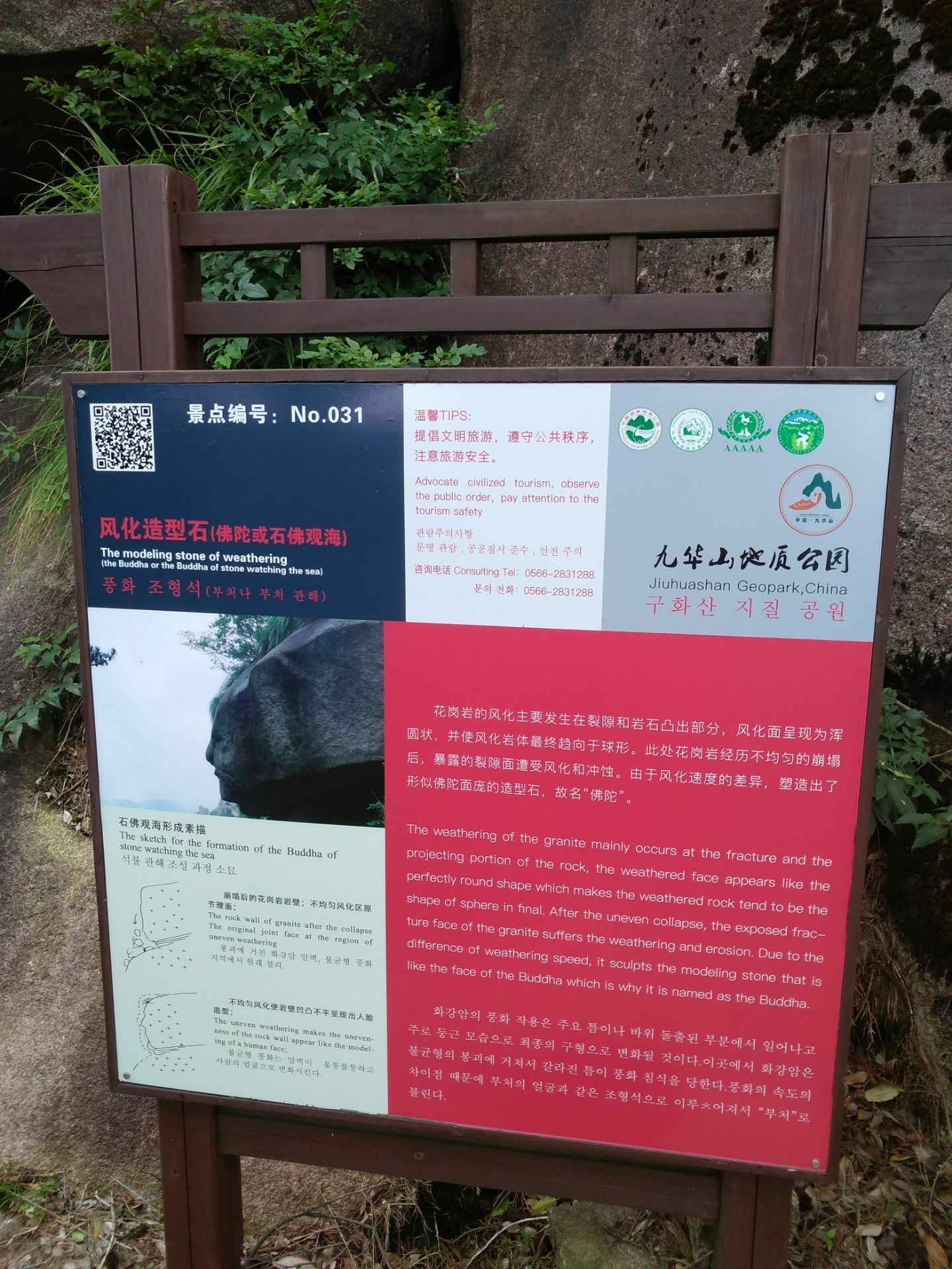 石佛这一景点位于九华山景区小花台之小闵园的路上,如果你不仔细观察,很可能会错过这一大自然的神奇
