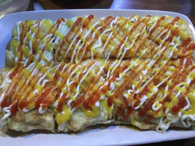 脊排卷着加热的奶酪,味道很赞,脊排肉很多,奶酪也很香,可是吃多两块就会觉得腻味。真的挺好吃的。最爱饭团。鸡蛋卷也很好吃。但是我不太喜欢起司,所以有点腻!闺蜜非常喜欢说比国内的好吃。老板特别热情,还会说几句韩语!不错!