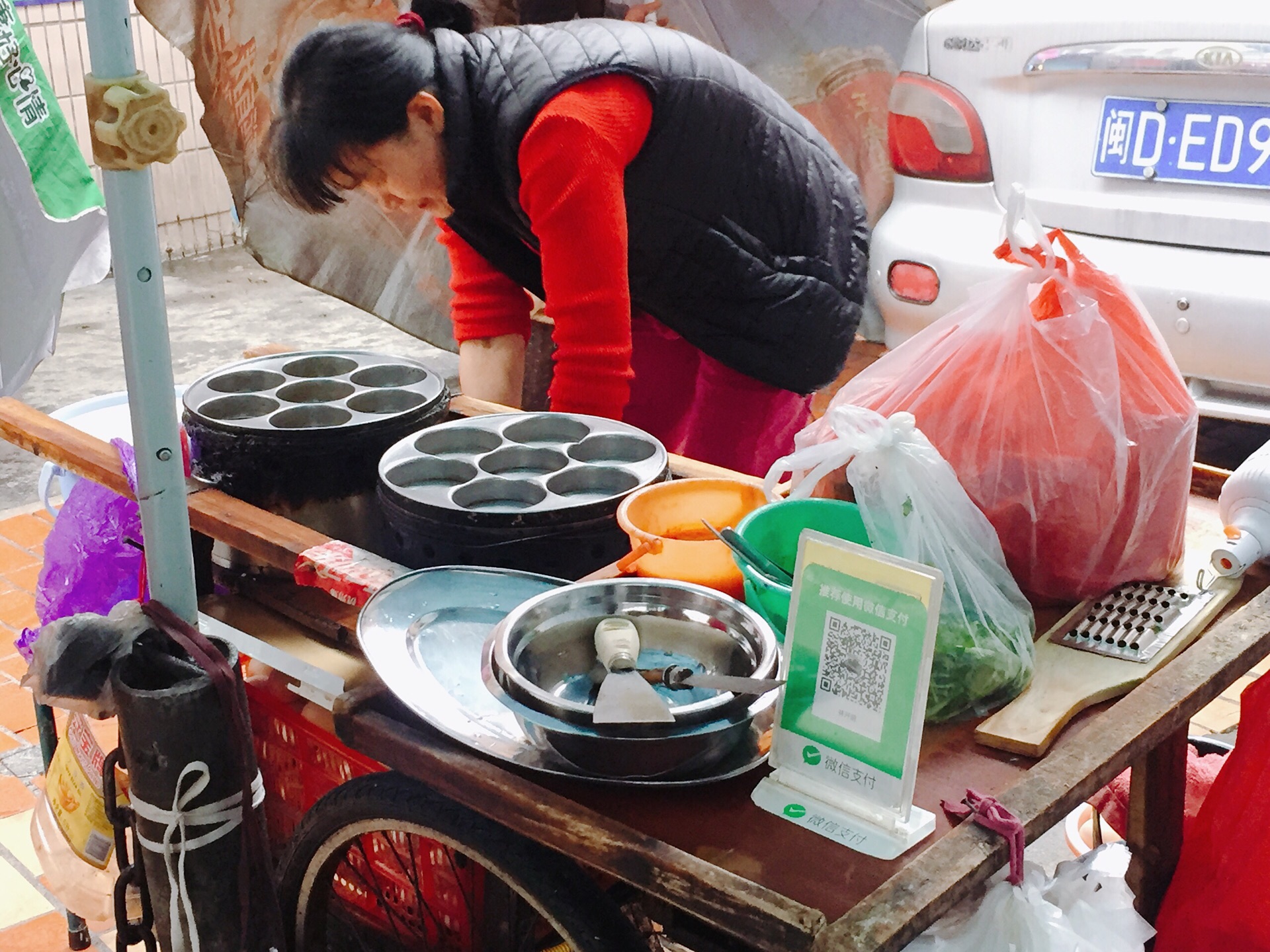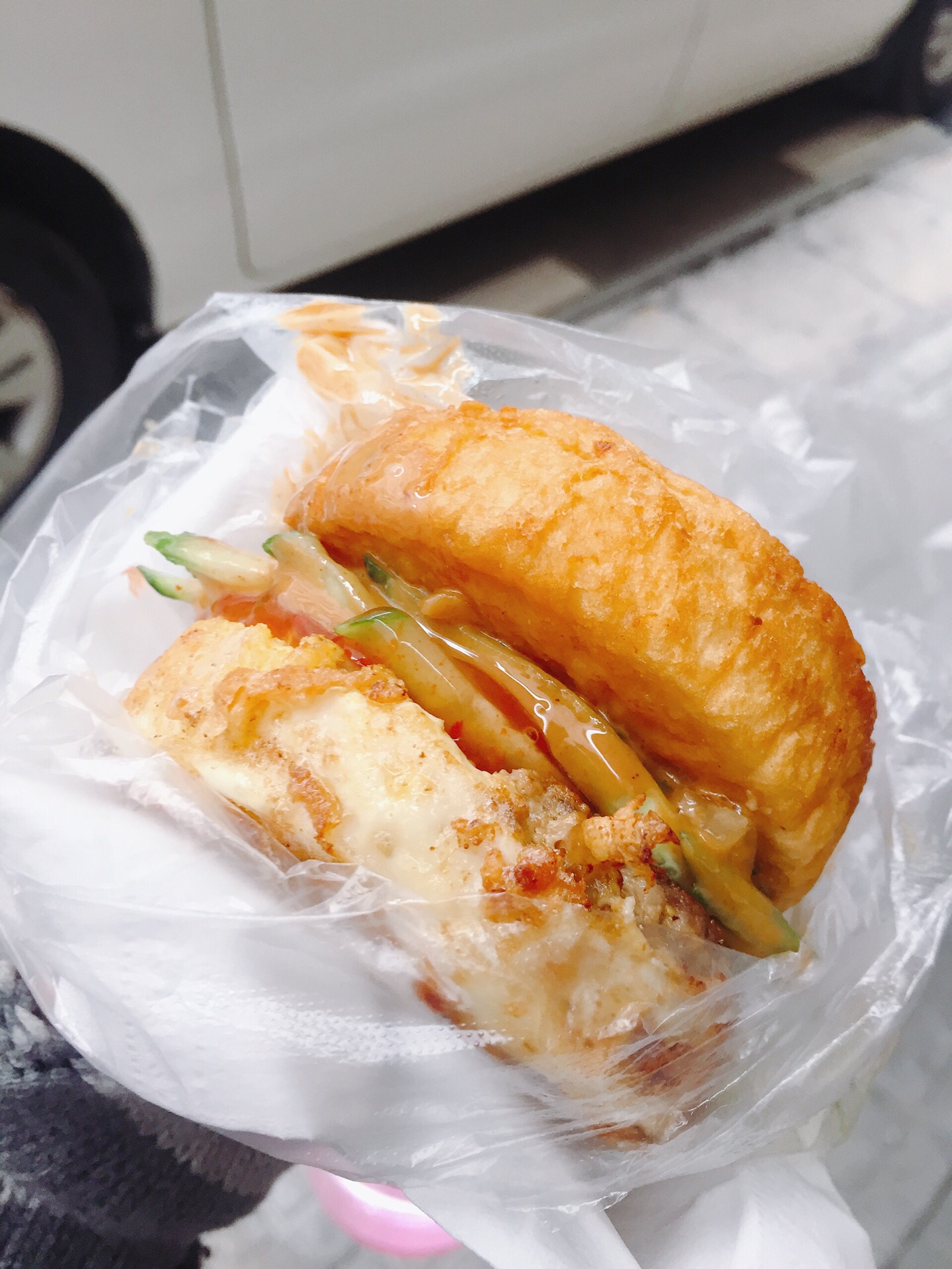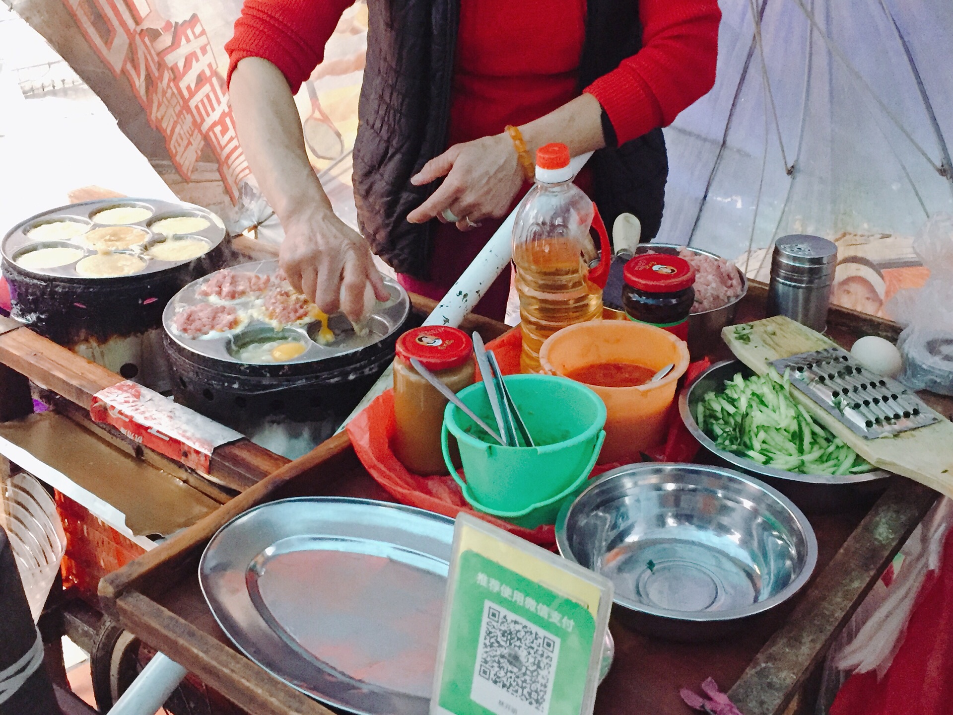 ∠( ᐛ 」∠)_ 进岛前,我的鸡蛋汉堡世界还停留在小镇百货大楼门前的2元汉堡,吃了十几年,如今,没想到解锁了新模式。 思西汉堡,靠近中山路,街边小摊,历经18年,网络助推下,也成了网红美食,3点才开市,摊子还未摆好,前面已有2位在等待。 和吃惯的面糊夹馅方式不同,思西汉堡,一层面糊,一层鸡蛋肉馅,配料酱料都很丰富,学着第一位老顾客,除了老干妈,甜辣酱、花生酱、黄瓜、香菜等都通通安排上。 肉馅用量真的不含糊,大口的满足,多样滋味在舌尖流窜,酸甜、爽口、香醇,多种乐器共同演奏动人旋律。 不过,制作时间长,一锅也就7个,有的食客一次带好几个,真的有得等。遇到个不错的老顾客,原本买10个,担心其他人等太久,自动减量到1锅,为陌生人的这贴心点个赞。