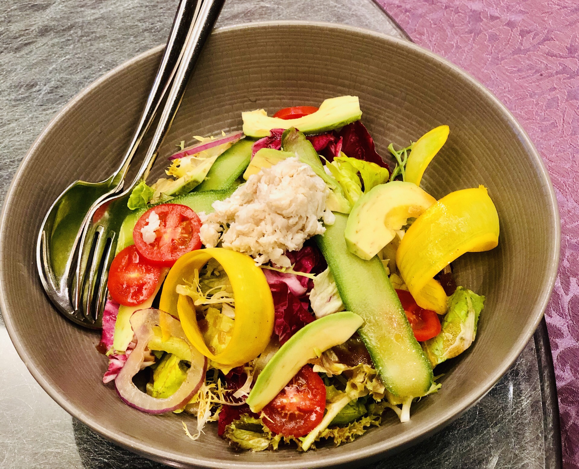 烧腊中经典,点个[强] 【蟹肉牛油果蔬菜色拉】色拉色面特别丰富,白色的蟹肉一丝丝的,切片、还有...