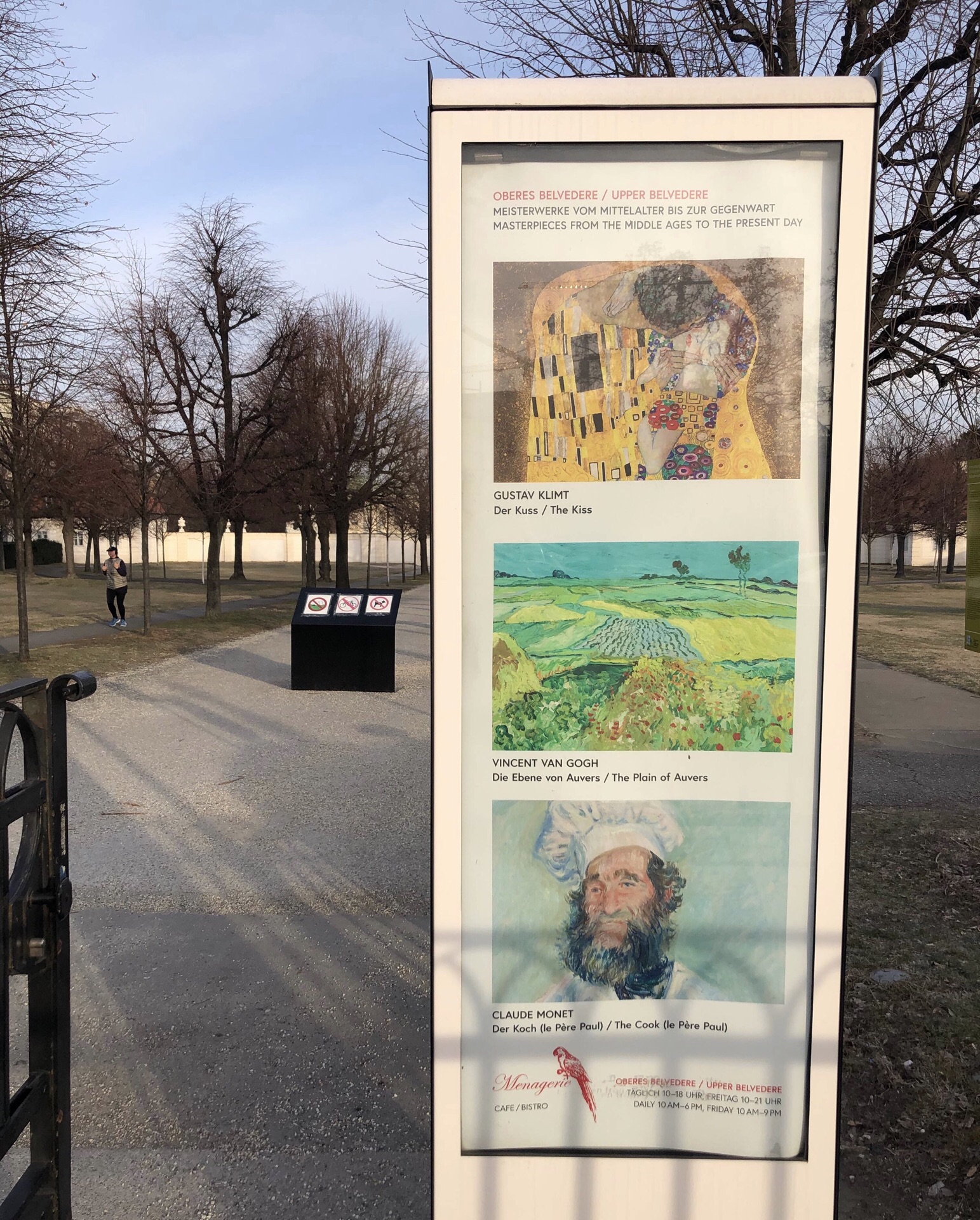 打卡奥地利美景宫,在首都维也纳市内,也是国家美术馆,分为上宫和下宫,馆藏十分丰富,都是真迹。镇馆之宝是奥地利画家古斯塔夫·克里姆特的举世之作《吻》。另外还有法国印象派大师梵高的《奥维德平原》莫奈的《厨师》等多人的作品。