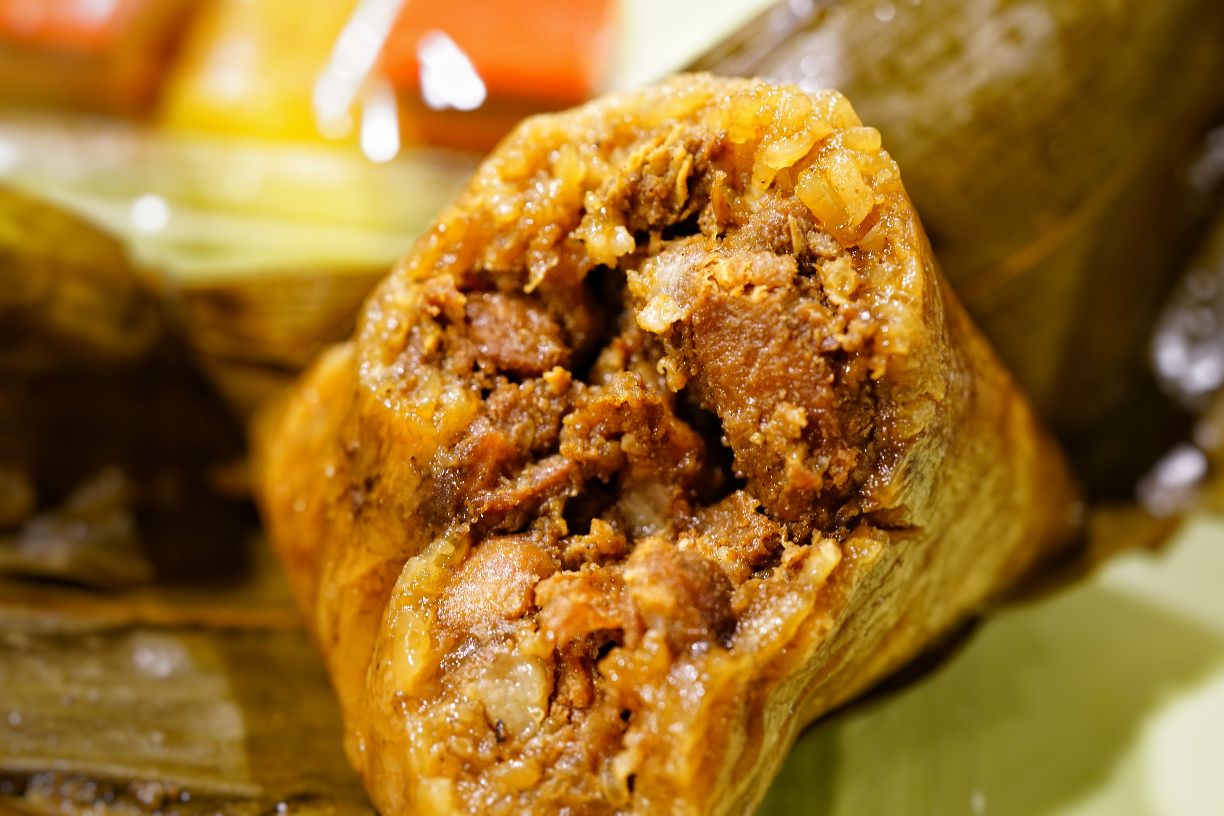 当地人告知的一家娘惹肉粽店,同时也有不少娘惹点心贩卖~ 老板介绍了一堆,名字太难记了,一个没记住~ 看着样子胡乱捡了一堆,提到对面商场里拆开来,慢慢吃了~ 绿色椰蓉球~ 应该是被班兰叶染成绿色的糯米球,外层裹满了雪一般的椰蓉,颜值还是挺高的~ 一球入口,直接爆浆,带有红糖的砂质质感,满口的椰子糖风味,嗜甜的人会一个接一口的~ 这个色彩鲜艳的类似发糕的,闻着有近似泡耙的独特气味,味道也是近似,但口感却是带有沙糕的口感,橙色的较为特别,在收尾有些许的清凉感~ 蓝绿双层小点~ 下层是使用蓝花染色、椰浆调味的蓝色椰浆饭,带着微咸与奶香与班兰叶染色的绿色混合,一咸一甜混合之后,咸味大减甜味稍加,但椰奶香气明显提升,好吃~ 其他太多,一个就是一复合味,就留个悬念吧~ 娘惹肉粽~ 与国内常见型似而里不一,扒开粽子香叶,只有薄薄的一层糯米层,里面慢慢的肉肉,而且几乎全是瘦肉,不柴但略微干香,带着收敛的肉香与浓缩的甜,多种香料的辛香,意外的好吃~ 不过个头不小,一个就塞饱了~ 福建肉粽~ 与娘惹肉粽大体一样,只是调味更偏咸味一些,肉块大小更加的粗犷~