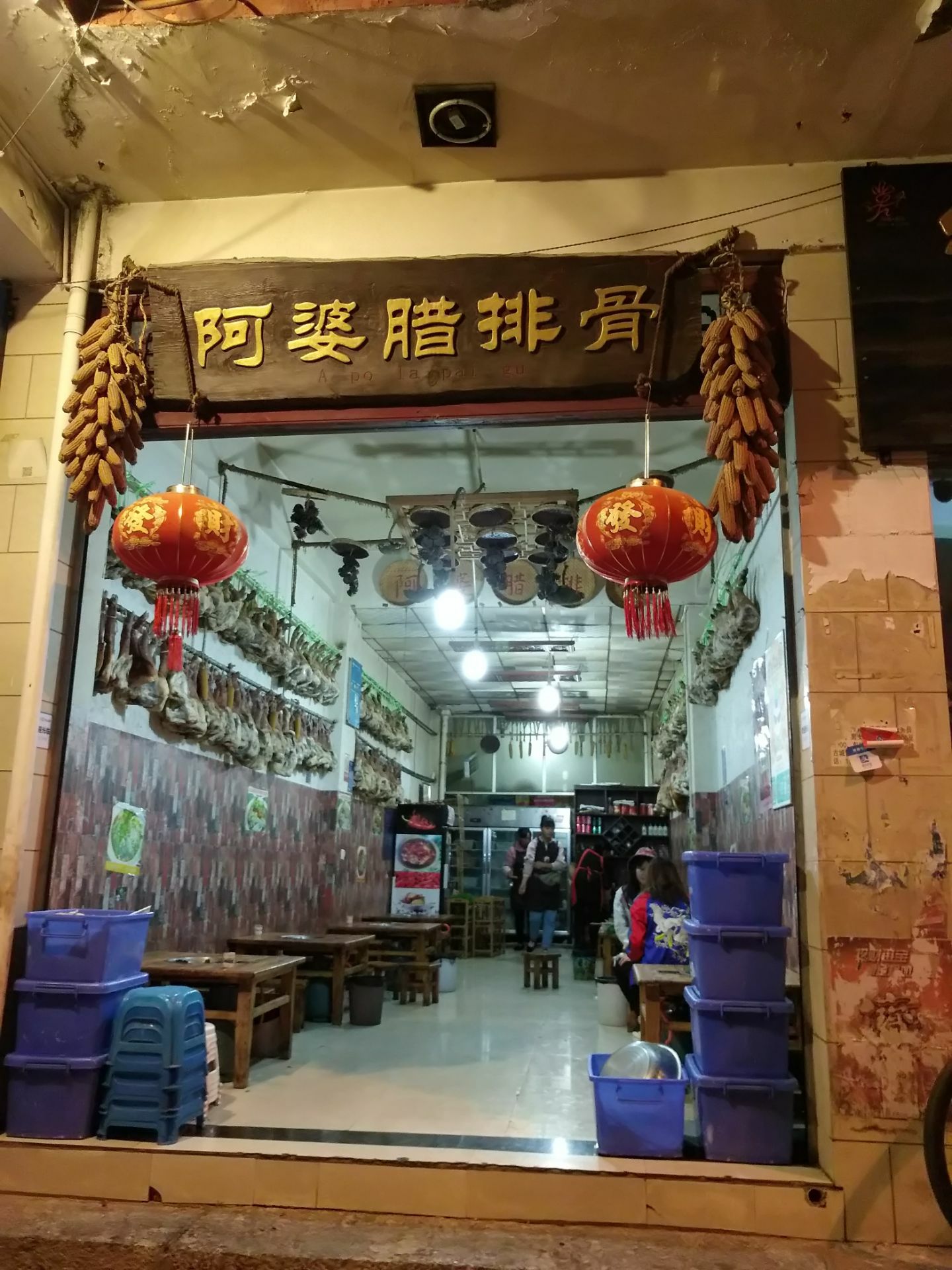 并且去里面吃饭的都是本地人,应该挺受大家欢迎从玉龙雪山游完回来,自己一个人去阿婆腊排骨吃的饭,店面不大,但是离我住的地方挺近的,墙上都挂满了火腿,挺壮观的,自己点了一份腊排骨,感觉吃的饱饱的,味道不错。并且去里面吃饭的都是本地人,应该挺受大家欢迎。