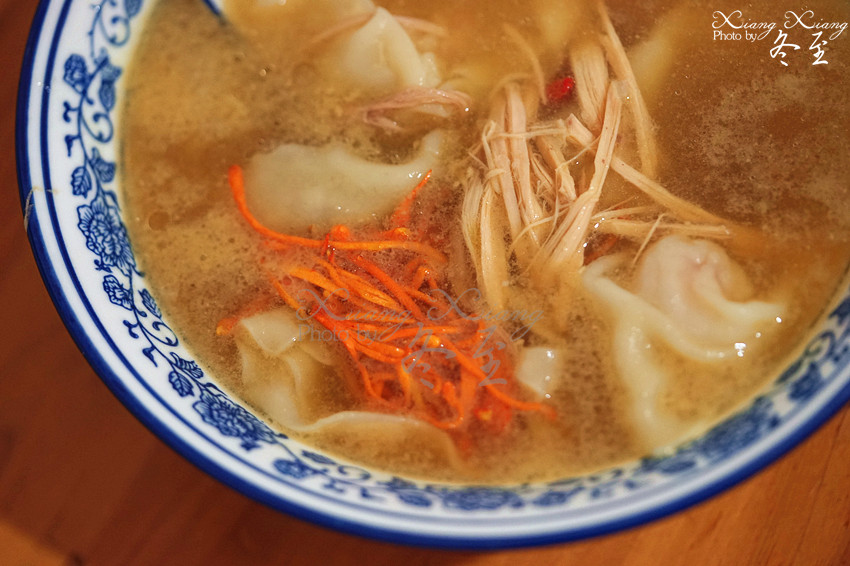 对翟大爷一直心心念念,昨天和JM干脆择日不如撞日,就寻了过来。感谢我JM,不辞辛劳带我飞! 来的时候已经快到晚上七点,虽然没有排队,但还是那种要拼桌的架势,可想而知店里的人气该有多么旺!太喜欢点单的嬢嬢了,态度飞好,一直笑嘻嘻的,完全不嫌弃我的瓜问题,耐心地解释。点完单还不忘说一句,先吃到开胃菜等到哦。完全不是有些网红店那种“只留鼻孔在人间”的臭德行。而且翟大爷的中差评下也没有出现任何一句狡辩抵赖、冷嘲热讽,手动再点赞! 招牌和餐单都是毛笔字手写的,很有文化范儿。而且店里的餐具也都是青花瓷图案的,干净整洁之余,也增加了一分质感和品味。 开胃菜是【香辣萝卜干】和【糖蒜】。萝卜干的嚼劲还是蛮足的,但是咸味不太够。糖蒜是加分项,清脆爽口。 我很喜欢【鲜虾蟹子抄手】,每个抄手中都有一个完整的虾仁,口感Q弹饱满。但是我觉得我选错了口味,如果是鲜虾抄手换做鸡汤底的话,应该更鲜美。这里的竹荪鸡肉底汤完全能够担当“货真价实”这个词!汤味浓郁,不是那种鸡精味精勾兑的味道,还有鸡瘦肉丝在其中。 干拌的口味让我稍微有些失望,因为干辣椒面有些不太入味,如果能够加一道工序,淋一点明油的话,辣椒面的香味应该能够被逼出来,我觉得味道会更香,油气也会更浓郁一些。猪肉抄手的馅儿没有鲜虾蟹子抄手那么饱满,要是肉馅再搅拌上劲一些,应该会更好吃。 整体来说,确实不便宜,但是抄手的个头大,味道也不错,确实贵有贵的道理。