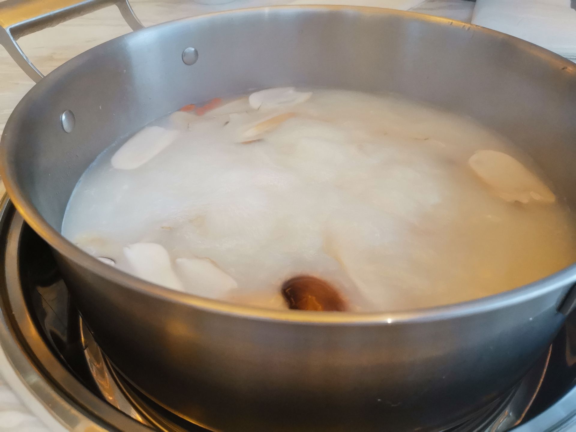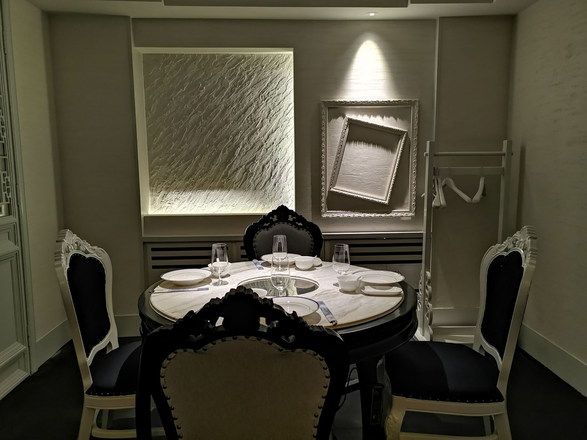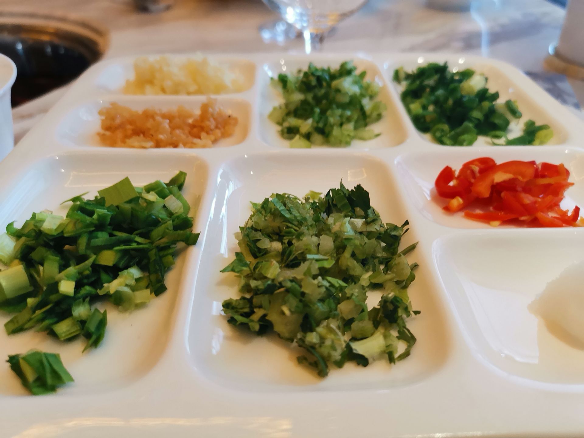 拔草了一家颇有档次的火锅店,汤城料青山,位于十一纬路40号。 从门脸看不出火锅店,店有两层。装修精美,一层散台,洁白为主色,非常漂亮。二楼有包房,各种装饰都十分的上档次。餐具也是精美绝伦,看着都很贵重。 服务态度挺好的,我和朋友选的招牌松茸锅底。松茸顶级食材,汤确实鲜美。可以先盛一碗直接喝。 这里的酱料是特制版,叫八味酱料。盘中八个小格,不同食材,然后把这些按个人口味都倒进餐盘中加上店内特制海鲜汁,咸鲜香。 食材很干净,质量也是上乘。多数菜品还是偏港式,肉类不散,菜类清新,还有其他东西也都可口。炸响铃我很喜欢吃。 松茸汤底吃完胃很舒服,没有丝毫的不适。吃完这顿,精神焕发了许多。