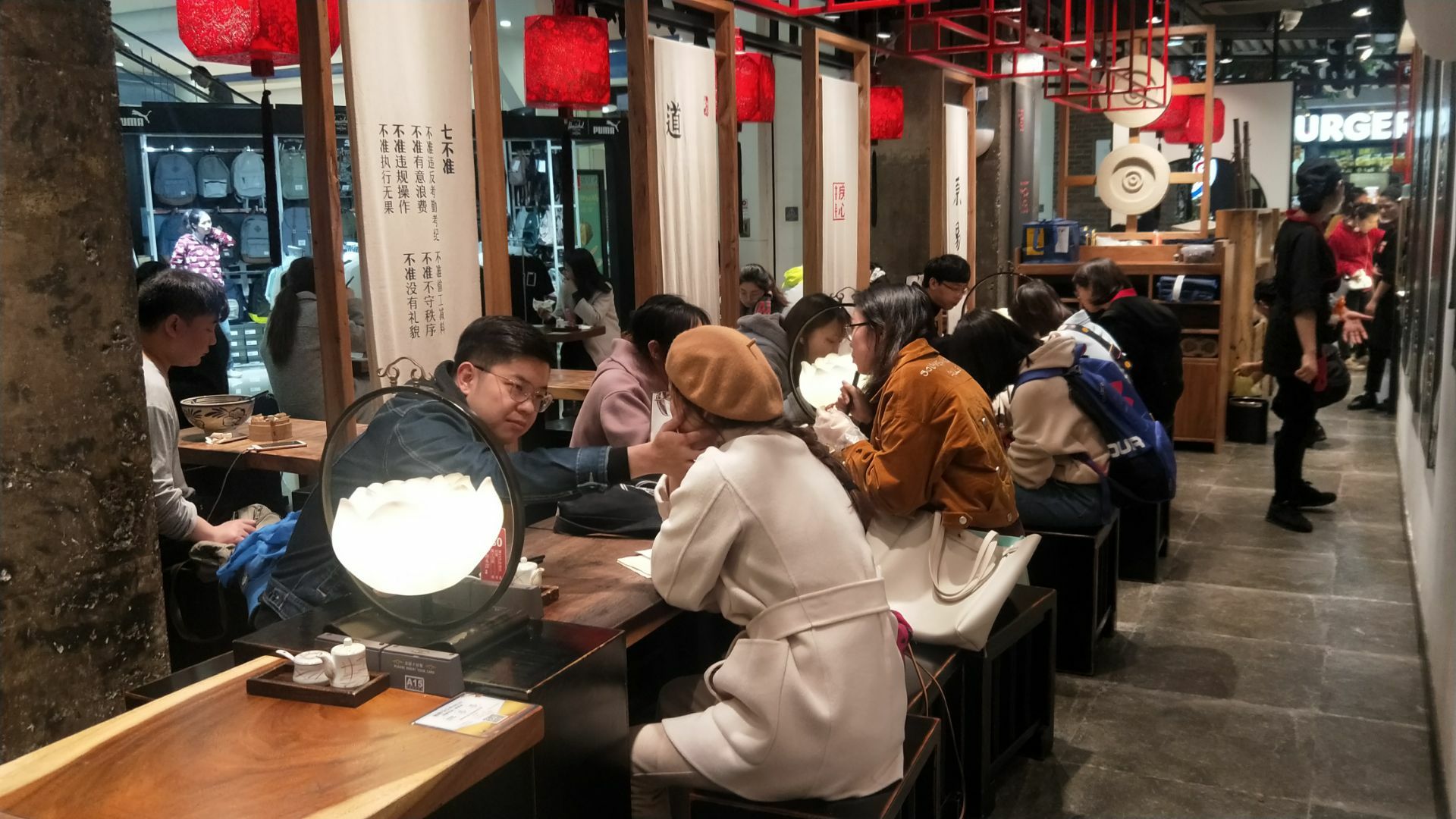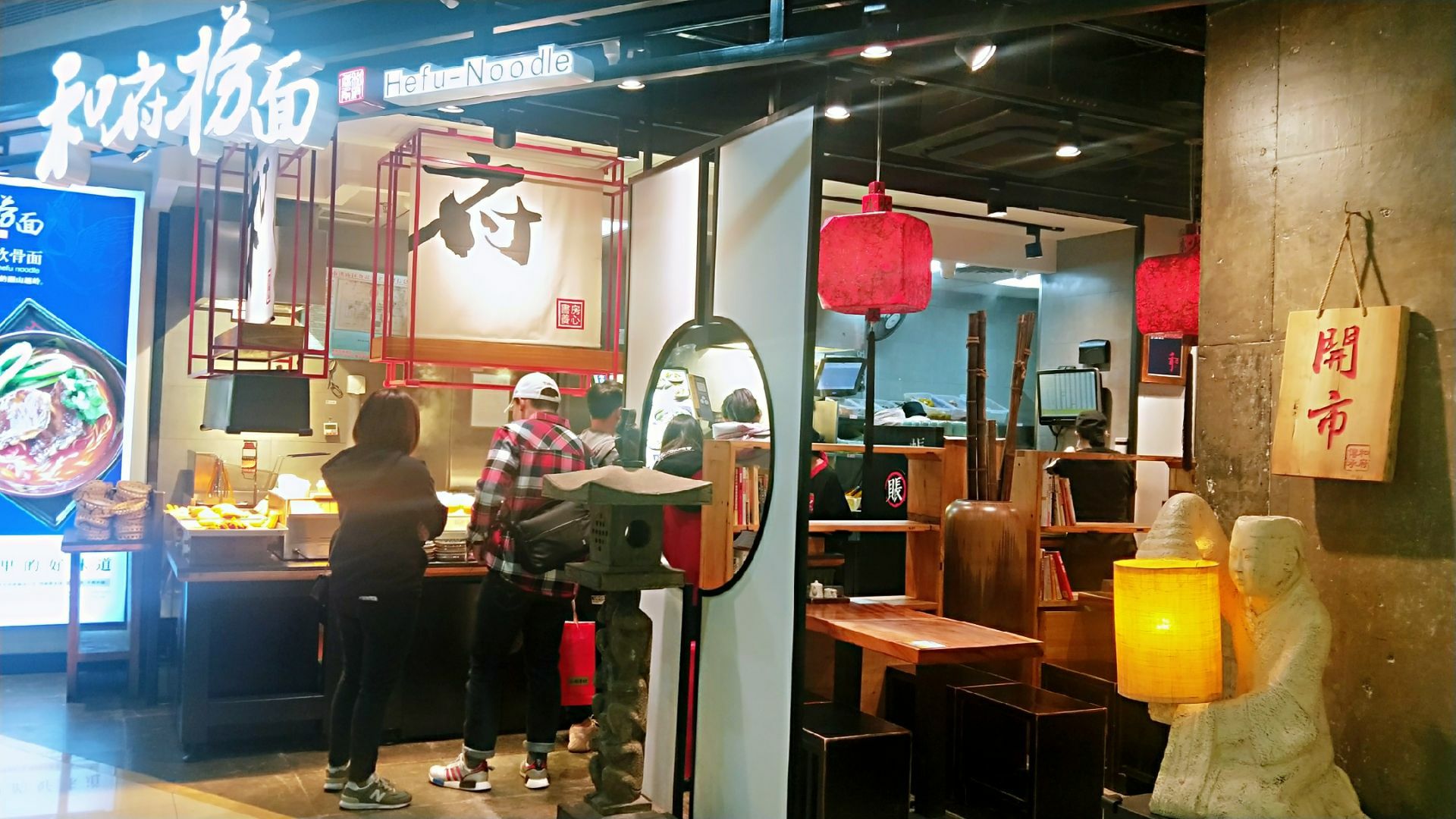银泰创意城的和府捞面位于负一楼,电梯下来就能看到。店里写有和府的五规六戒七不准,是一家中国风餐厅。里面装修环境挺好,轻音乐放着能舒缓心灵,还有小书房作陪,可以一边吃面一边看书一边听音乐,待着挺惬意的。 店里有各种菜品小吃,味道不错。第一次经过银泰创意城这家店感觉装修很有特色有拍照打卡。第二次看到朋友圈有同学推荐就来这家拔草啦。 点了新品酸汤猪软骨面价值37元,实际只花了10元钱,还是很实惠的。面条很劲道,汤很鲜美,猪软骨很入味,口味很棒!其他菜品像炸虾和鸡爪也值得推荐。