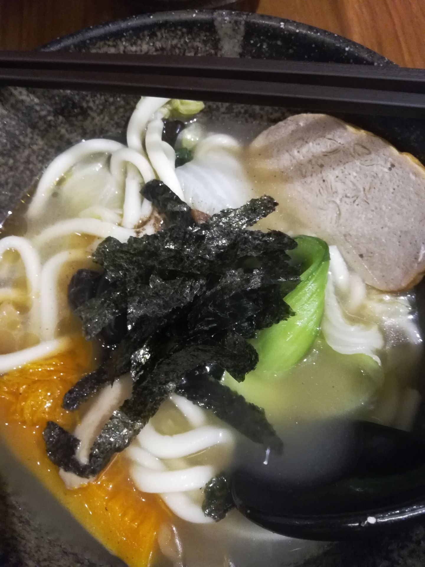 ...回来,从捷运双连站出来,路上经过这家店,晚饭看见门口的招牌推荐杂锦乌冬面,又累又渴就吃个汤面吧