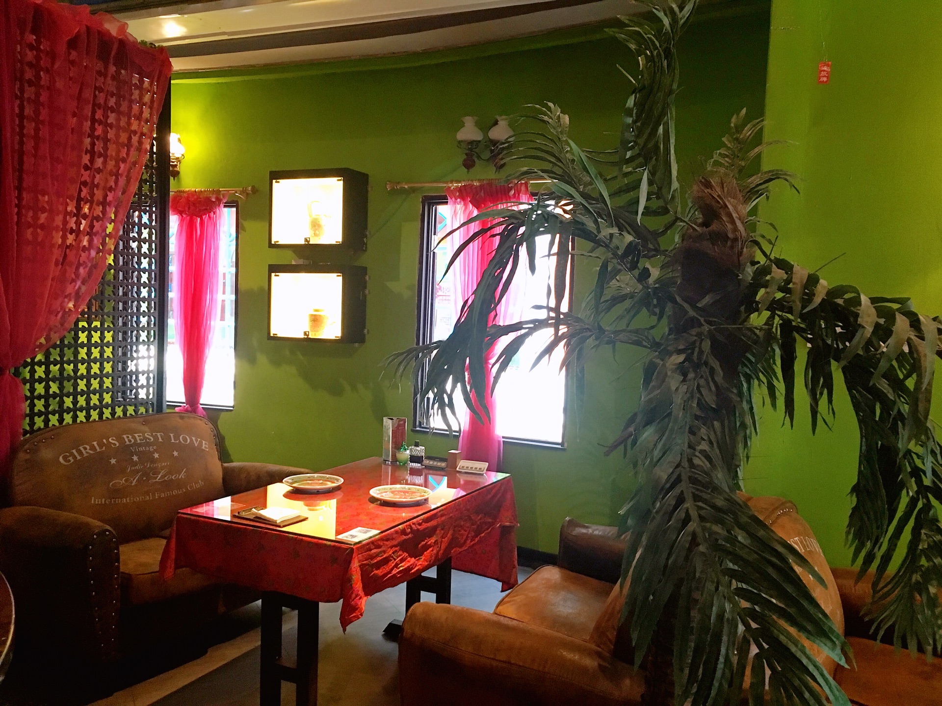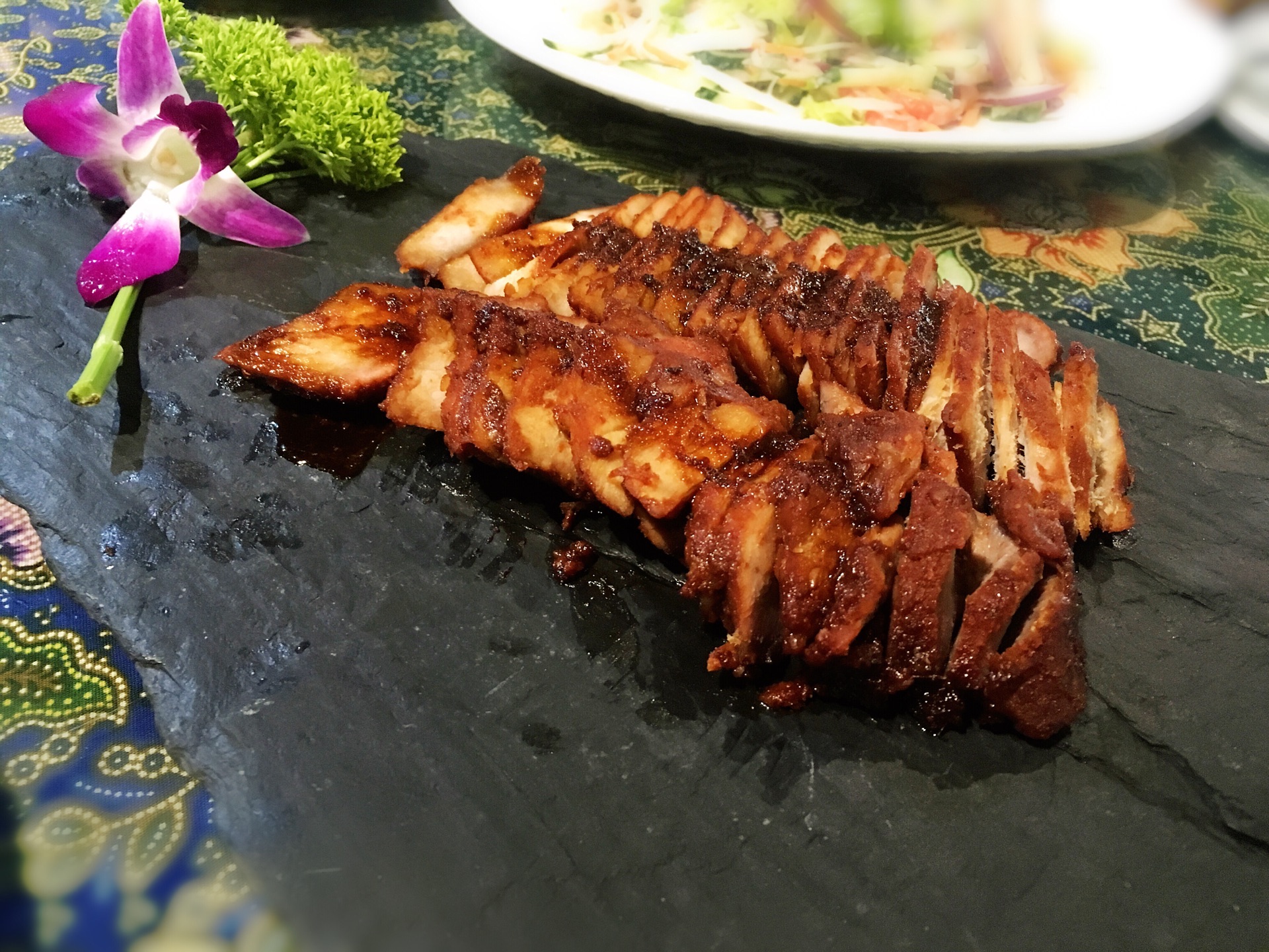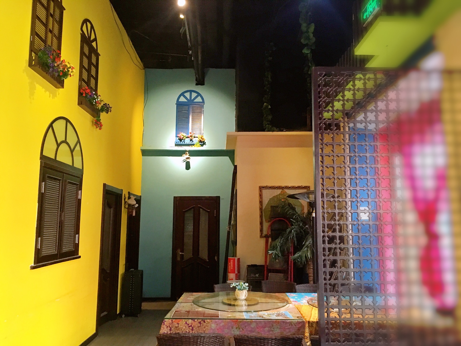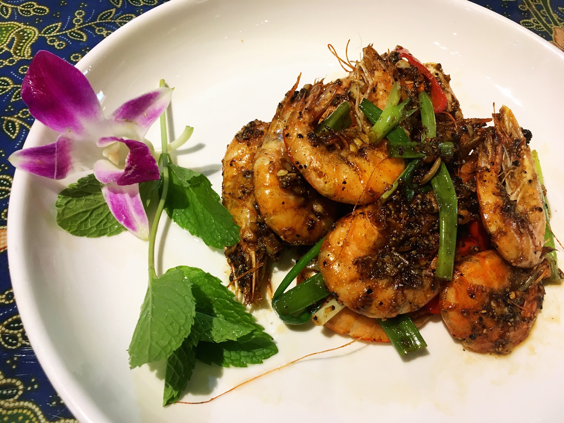 餐厅内部的面积其实蛮大的,举架特别高,就搭建出了一种森林般的感觉。几乎每个餐桌旁边都有一株椰子树,每一个餐桌的装修风格都是古色古香的。最喜欢他们家的吊灯,这种古色古香的宫灯一直是我的最爱。餐厅的中间部分竟然还有一个幔帐,还是挺有东南亚风格的。整个餐厅的墙壁都做成了窗户的形状,提高了餐厅色彩的明艳度。 『巴生肉骨茶』这是传统的东南亚菜,来之前特意查了一下,马来西亚传承的是我国福建的菜系,因此是苦中带甜。而新加坡传承的是我国海南的菜系,因此是甜辣口味的。茶其实是药汤,福建人忌讳说药而改说茶。砂锅炖煮,里面的食材很丰盛,包括猪排、猪肘、猪蹄、豆腐泡、油条,搭配米饭、酱料、辣椒和蒜。汤汁特别鲜美,平时不太爱吃米饭的我,都吃了整整一碗米饭。 『黑椒虾』摆盘中的这朵花,突然让我眼前浮现出别在少女头上的鲜艳的小花,黑椒虾稍微有些辣,甜辣的口感。 『娘惹烤翅』感觉这样三个烤翅都好大,微辣的口感,不细品感觉不到的微辣,蘸料有辣椒酱和调和酱料。 『蜜汁黑叉烧』餐具很有趣,是一个不规则的木板造型。这次的叉烧竟然以精瘦肉为主,很是惊艳,配上蜜汁,甜而不腻,很喜欢吃。 『酸甜蔬菜沙拉』在普通的蔬菜沙拉里加入了粉丝,更奇特的是加了山药,口感特别好,最开始我竟然以为是荸荠。 『洛神玫瑰茶』玫瑰红的颜色很是鲜艳,酸甜且偏酸的口感,解腻又好喝。