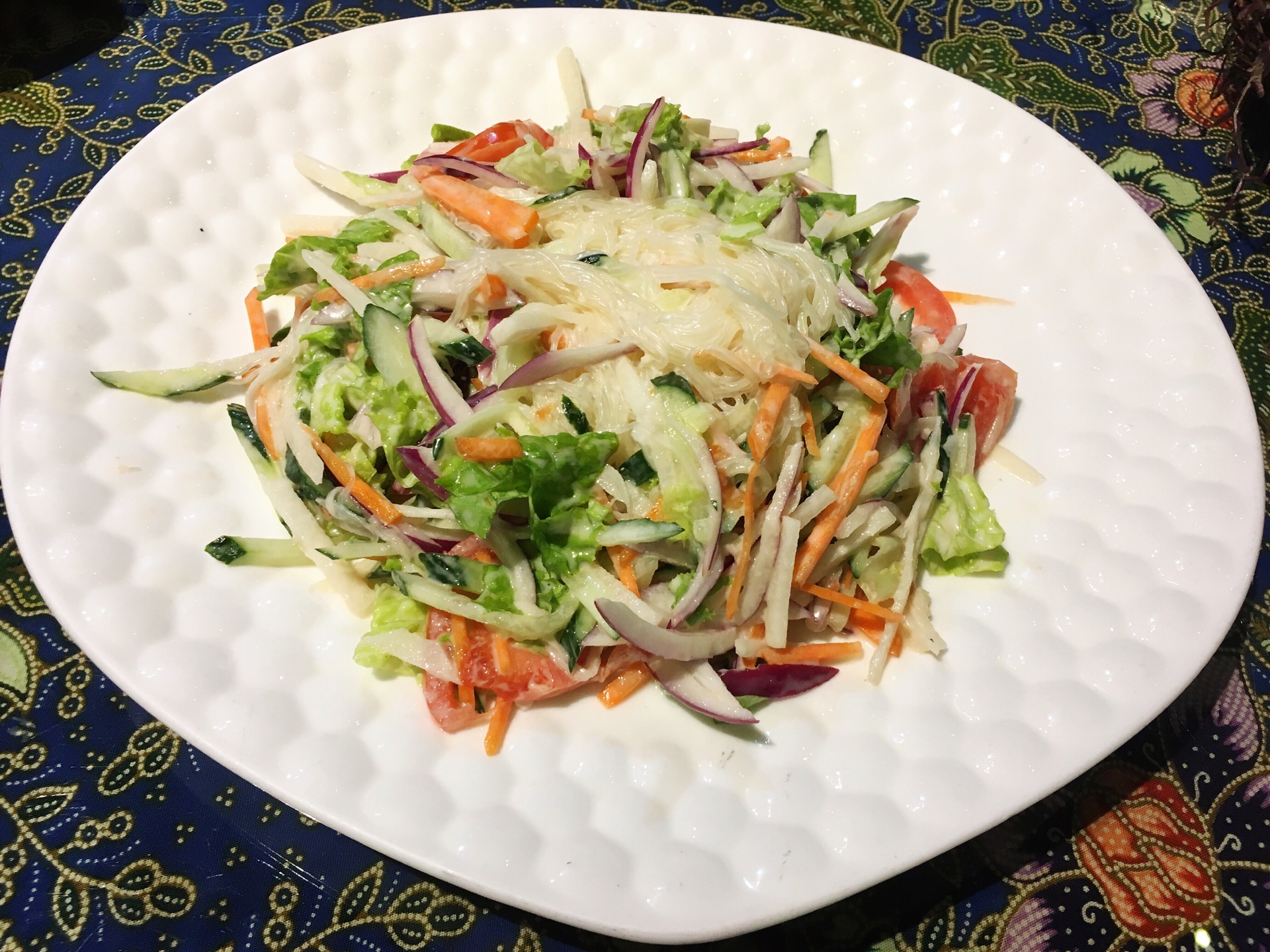 ...蔬菜沙拉』在普通的蔬菜沙拉里加入了粉丝,更奇特的是加了山药,口感特别好,最开始我竟然以为是荸荠